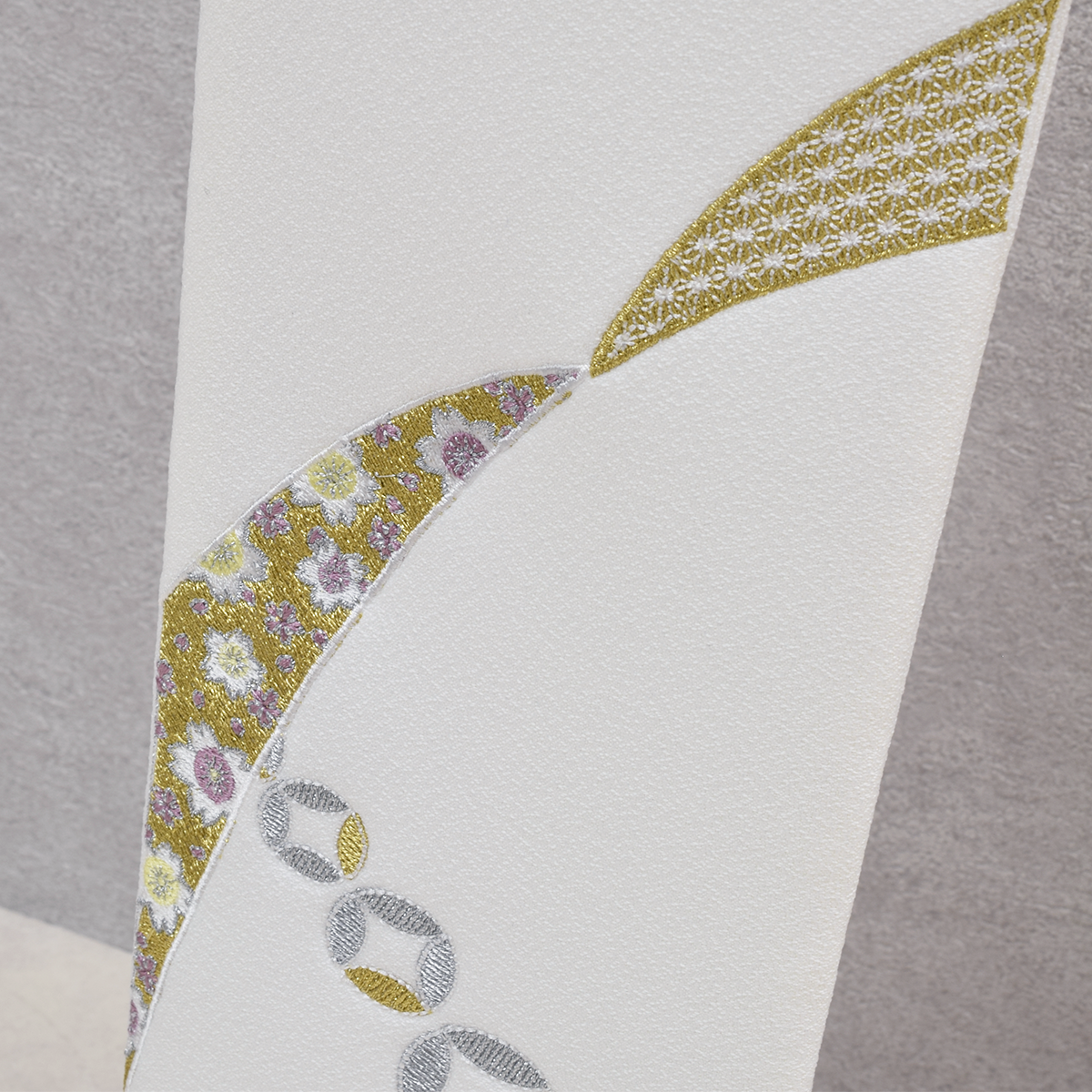 刺繍入りの背景のタペストリーは白地に七宝柄のお洒落なデザイン。