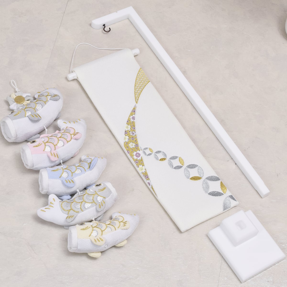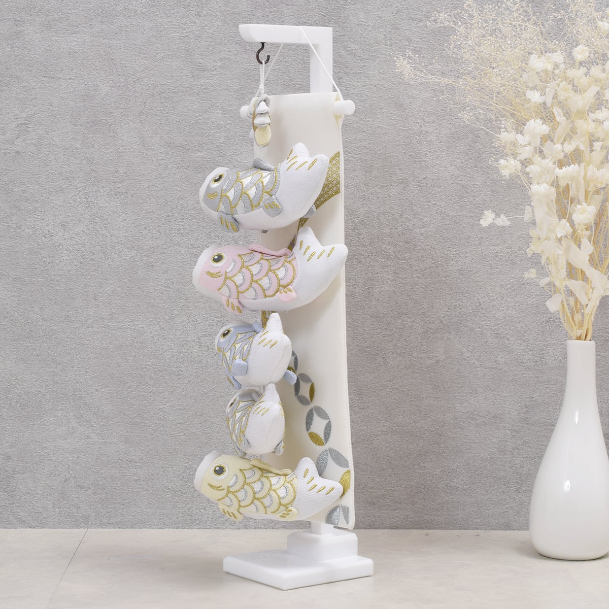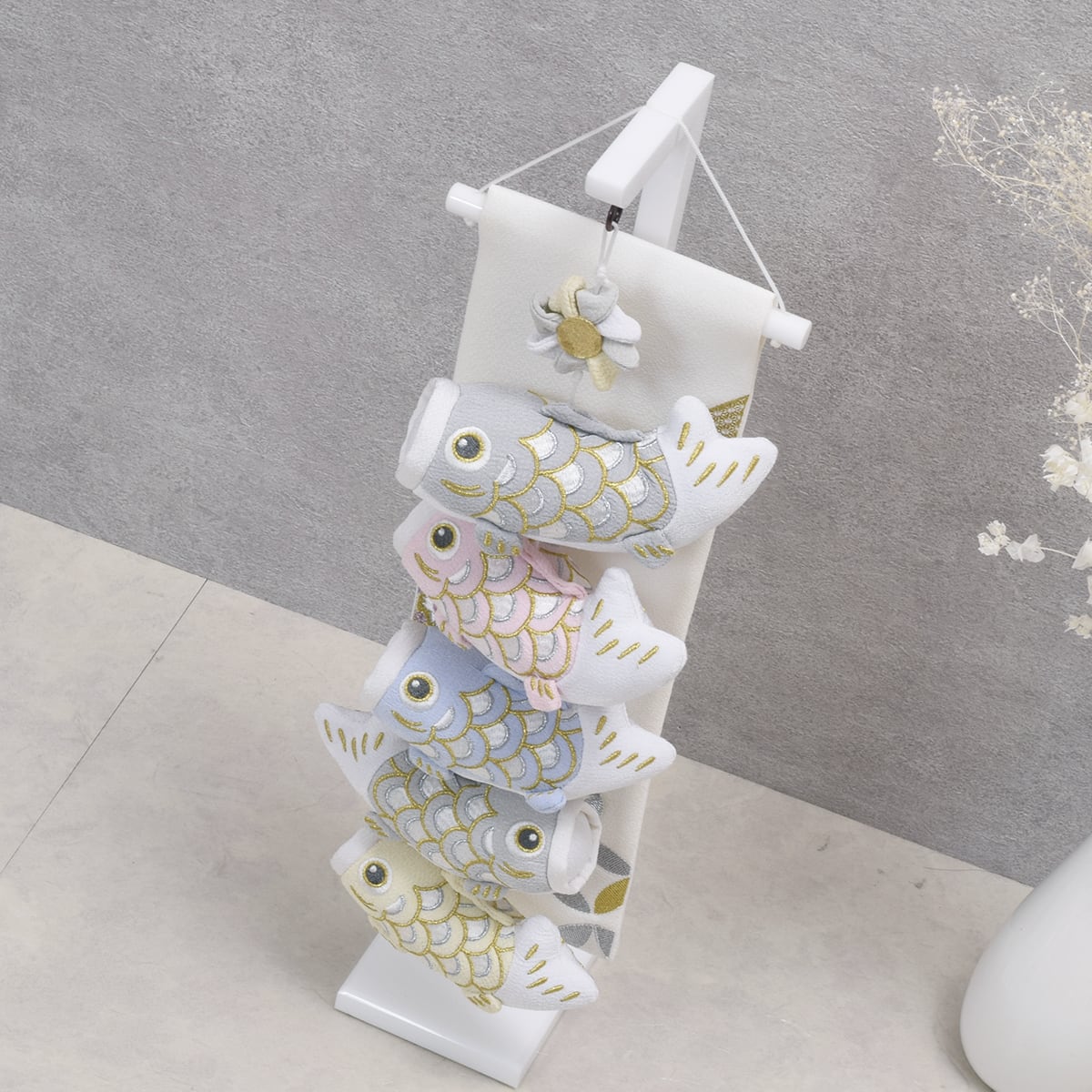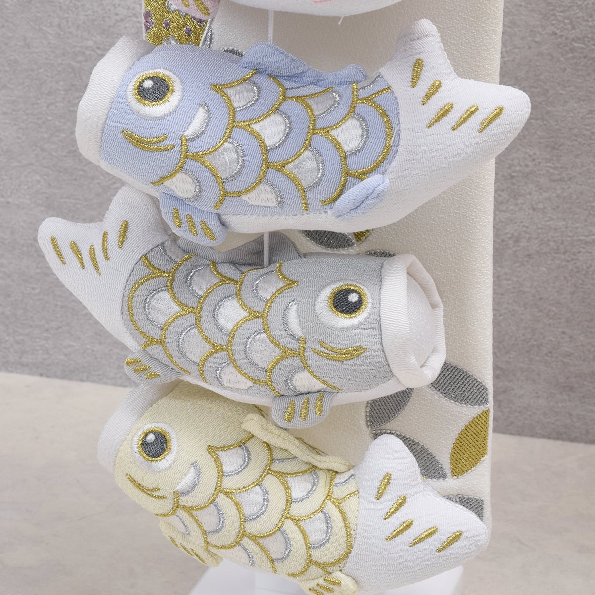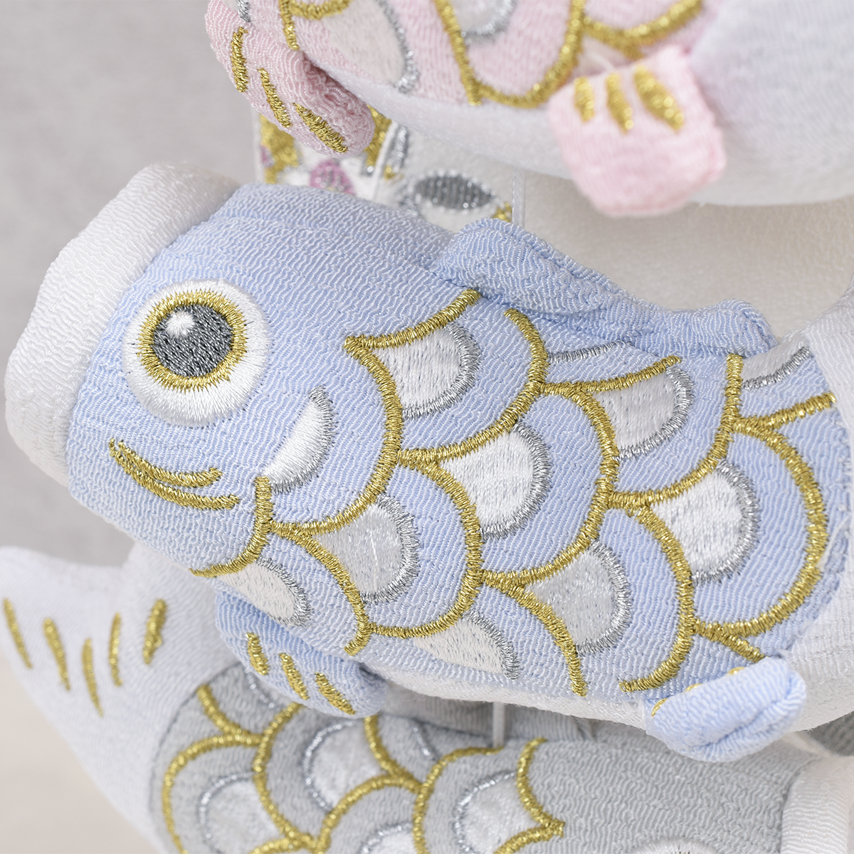 ちりめんの生地に刺繍を施したかわいい鯉のぼり。