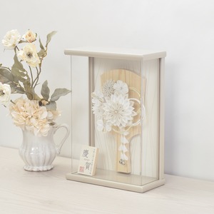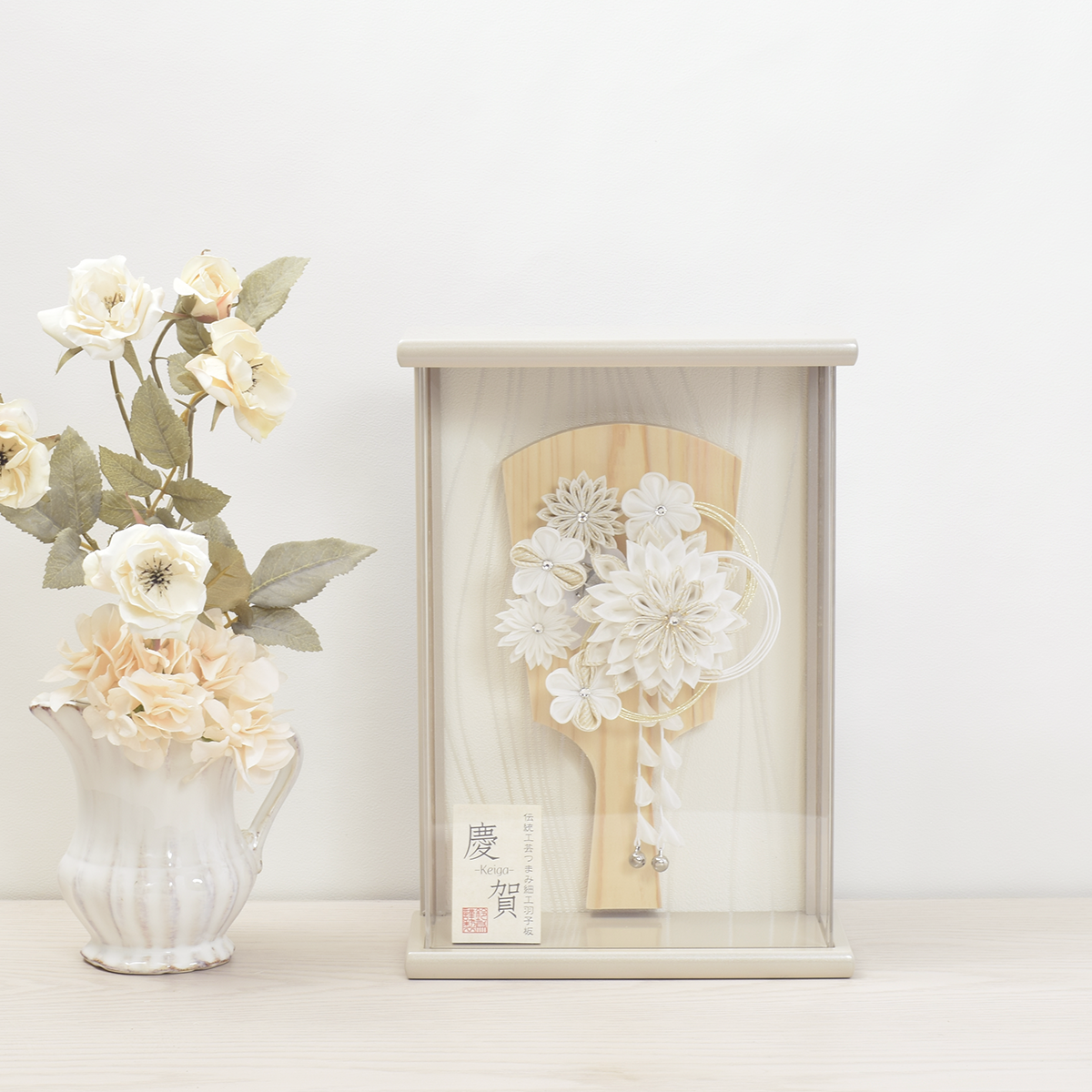 羽子板飾り つまみ細工【慶賀】perle ペルル|おしゃれ|モダン|今どき|コンパクト|スタイリッシュ|つまみ細工|正絹|白い羽子板|粋