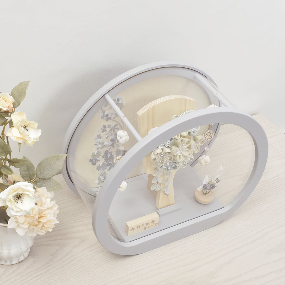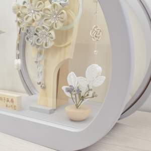 羽子板飾り【雫】Shizuku |特7号|つまみ細工|おしゃれ|モダン|今どき|コンパクト|スタイリッシュ|円形アクリルケース