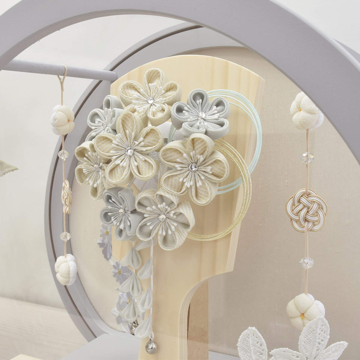 つまみ細工は取り外して「髪飾り」や「ブローチ」としても利用できます。