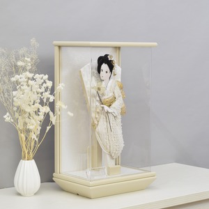 木製バニラ色塗のアクリルケースをシンプルなデザインで製作。