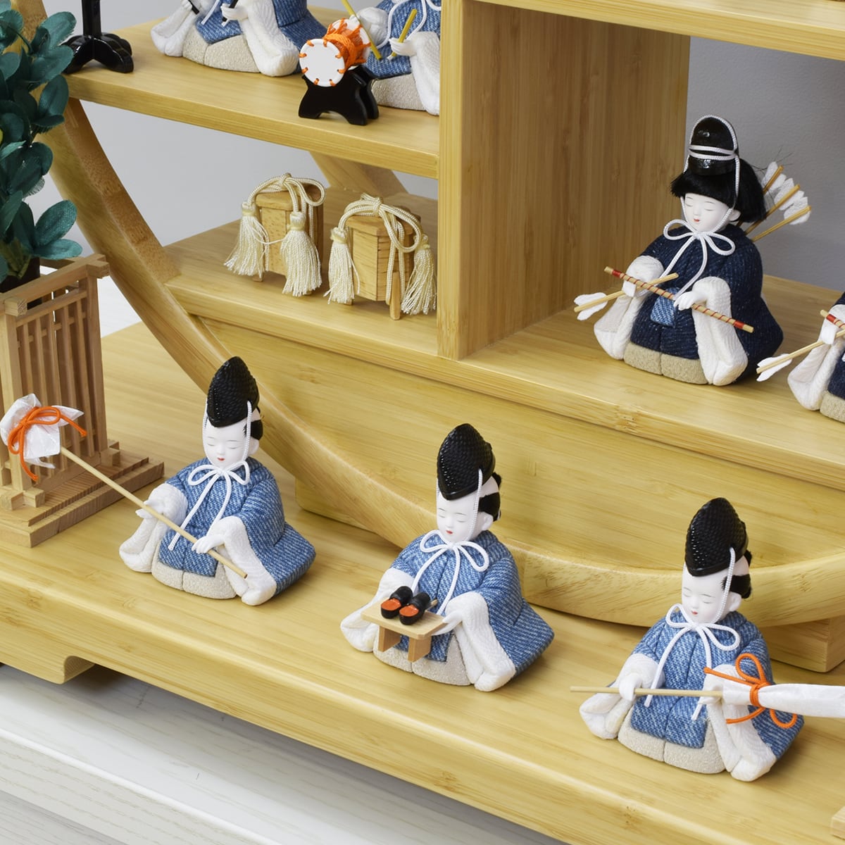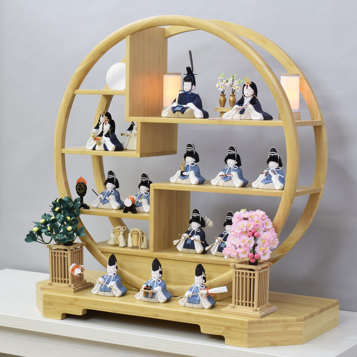 雛人形 15人飾り【円遊・denim】Enyuu|デニム調|モダン|おしゃれ|かわいい|今どき|和モダン|おすすめ|スタイリッシュ|一秀