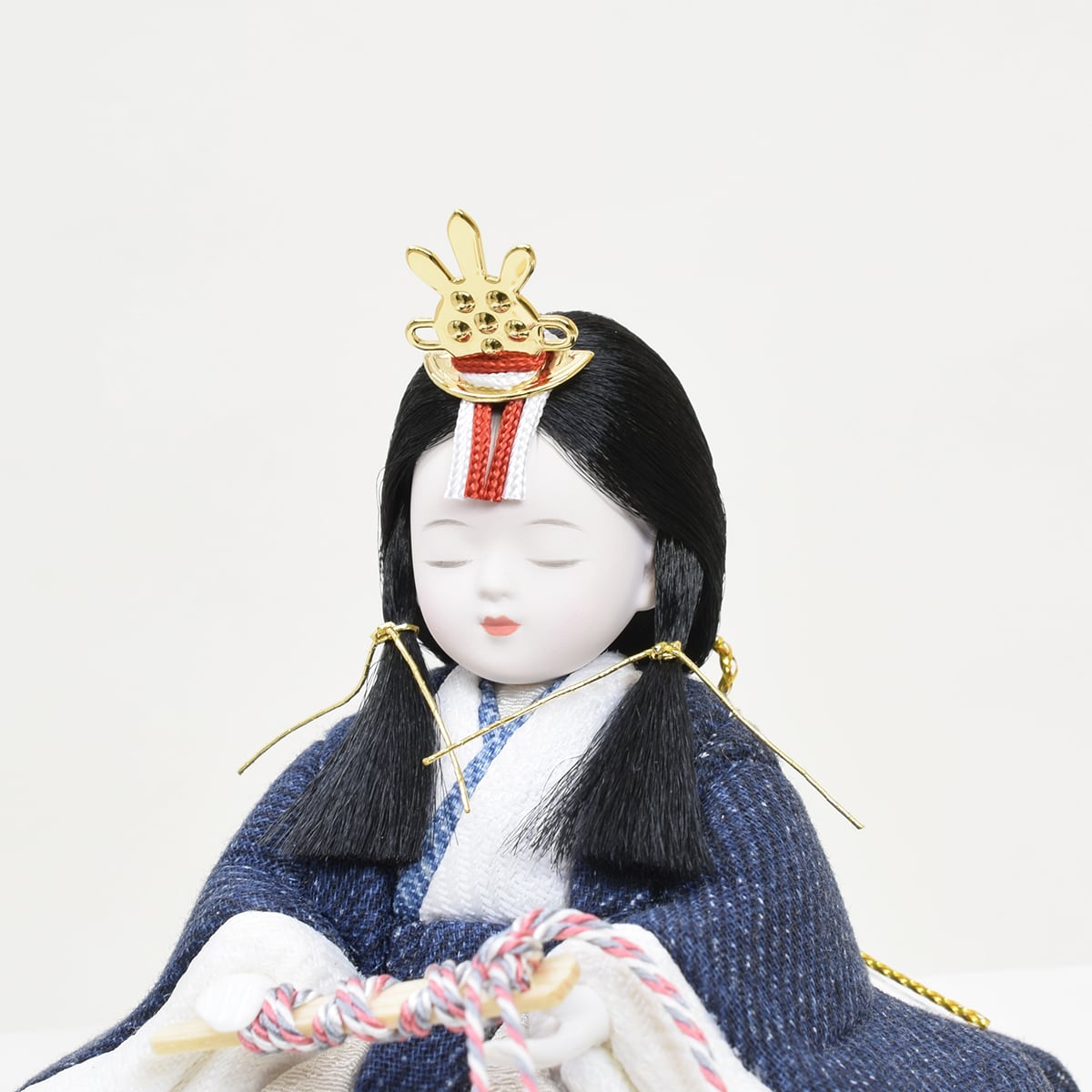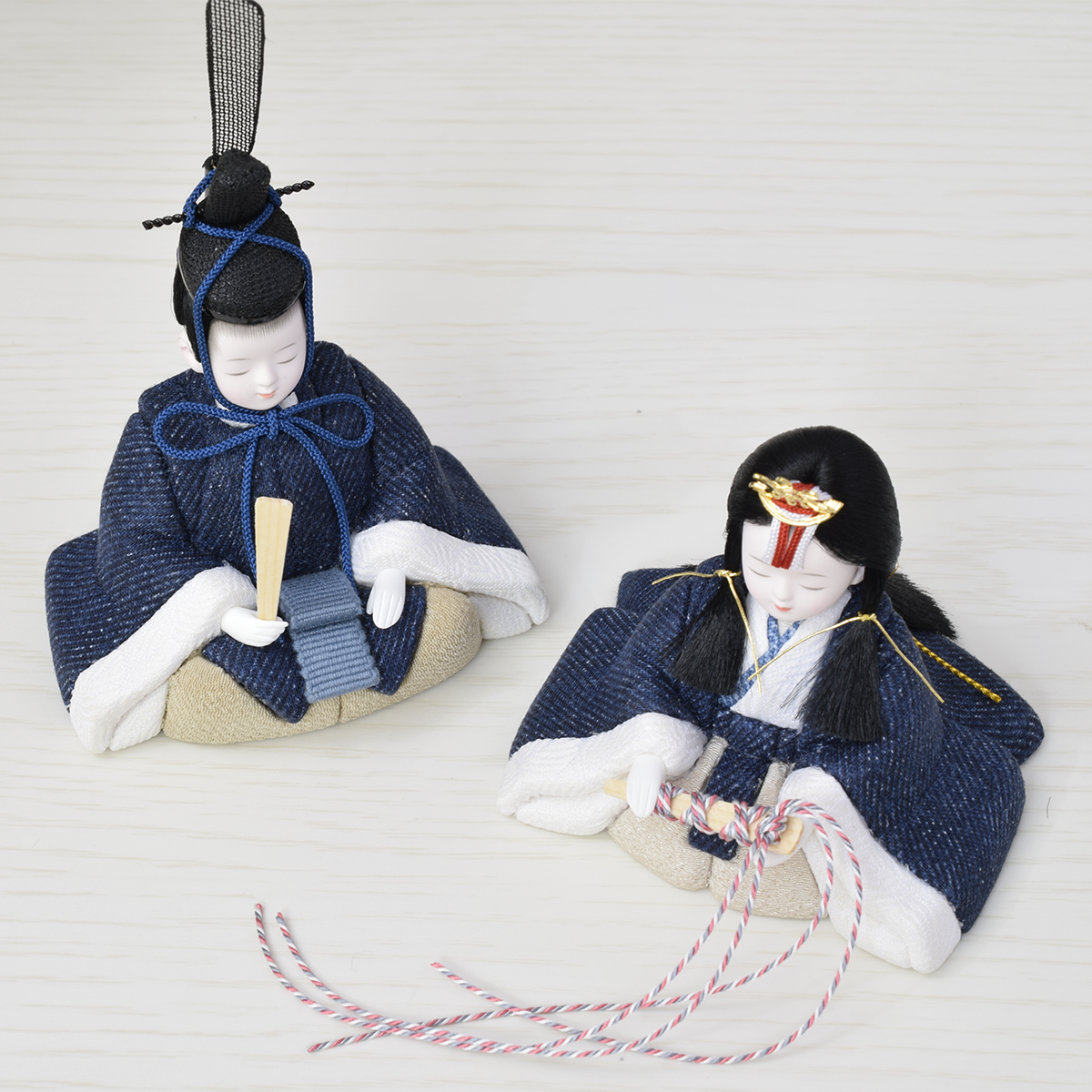 濃淡の藍色が眼を引くお洒落なお雛様です。
