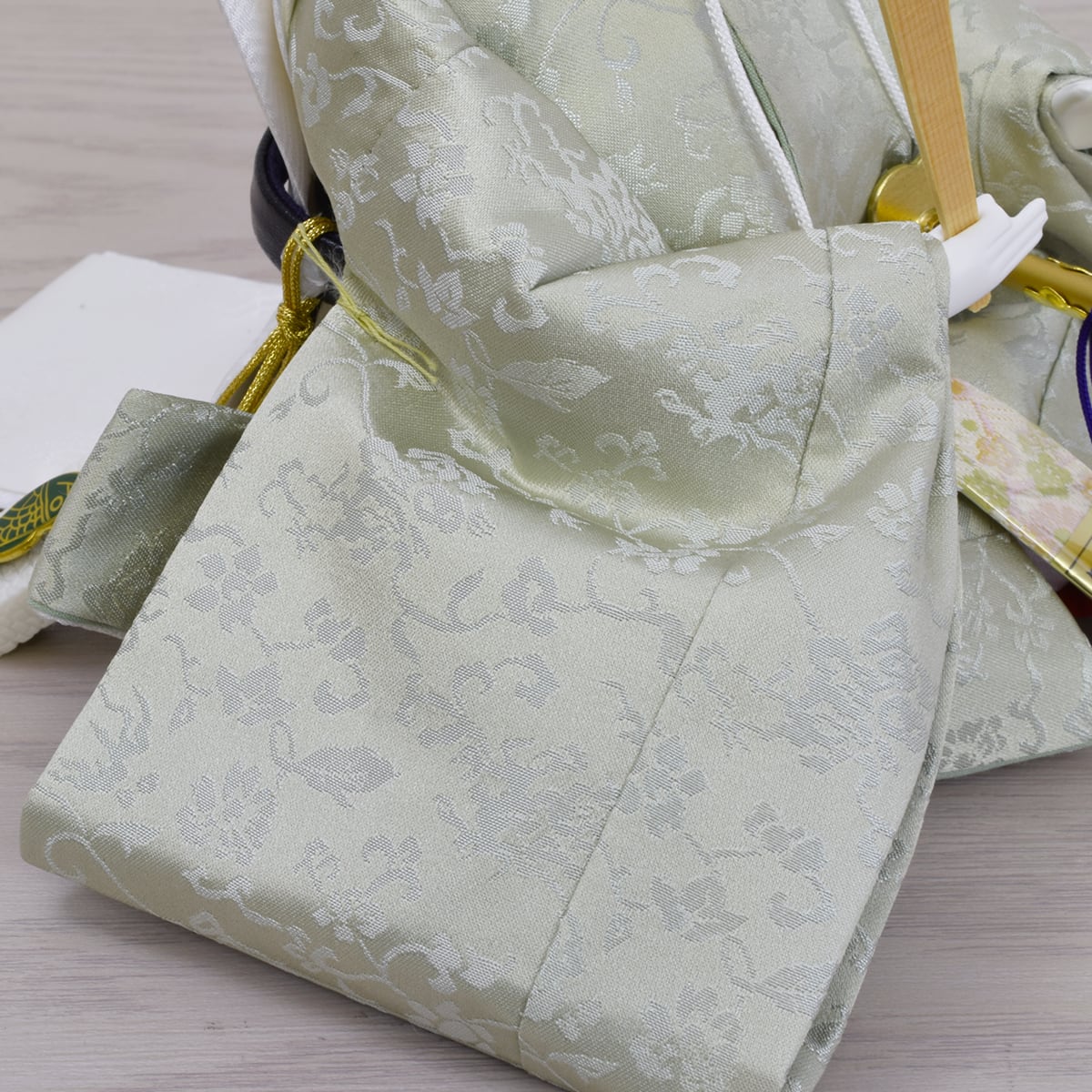 御被布(柄が変わる場合がございます)・お手入れセット(毛ばたき・白手袋・クロス)・オルゴール付写真立・2年間保証書