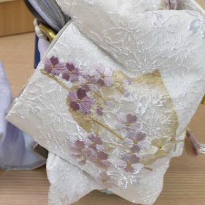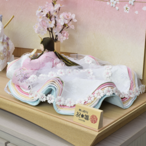 裳袴にはレース地を採用し桜の花を散りばめたかわいいお仕立。