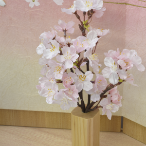 御屏風は麻和紙にぼかし染めを入れ桜の花を立体的に仕立てた