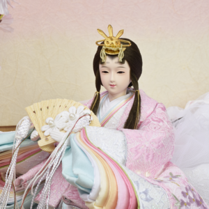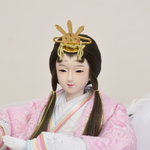 お姫様のお顔は美しく微笑むやさしいお顔。髪型は平安時代や公家の方々の髪型を模した