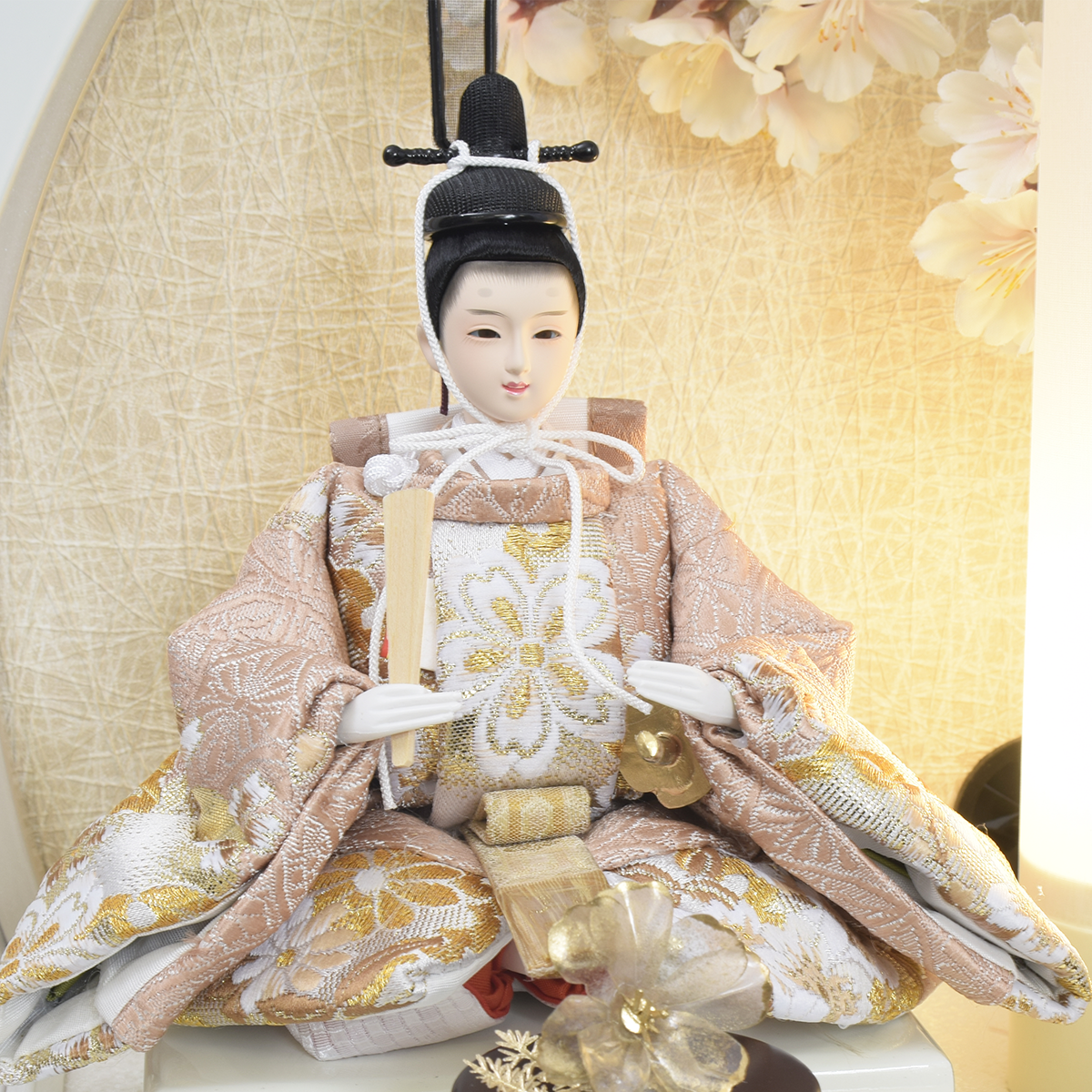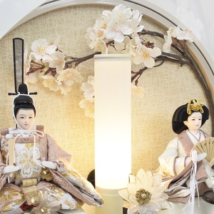 オリジナル性の高い個性的な丸形ケース入り親王飾り。