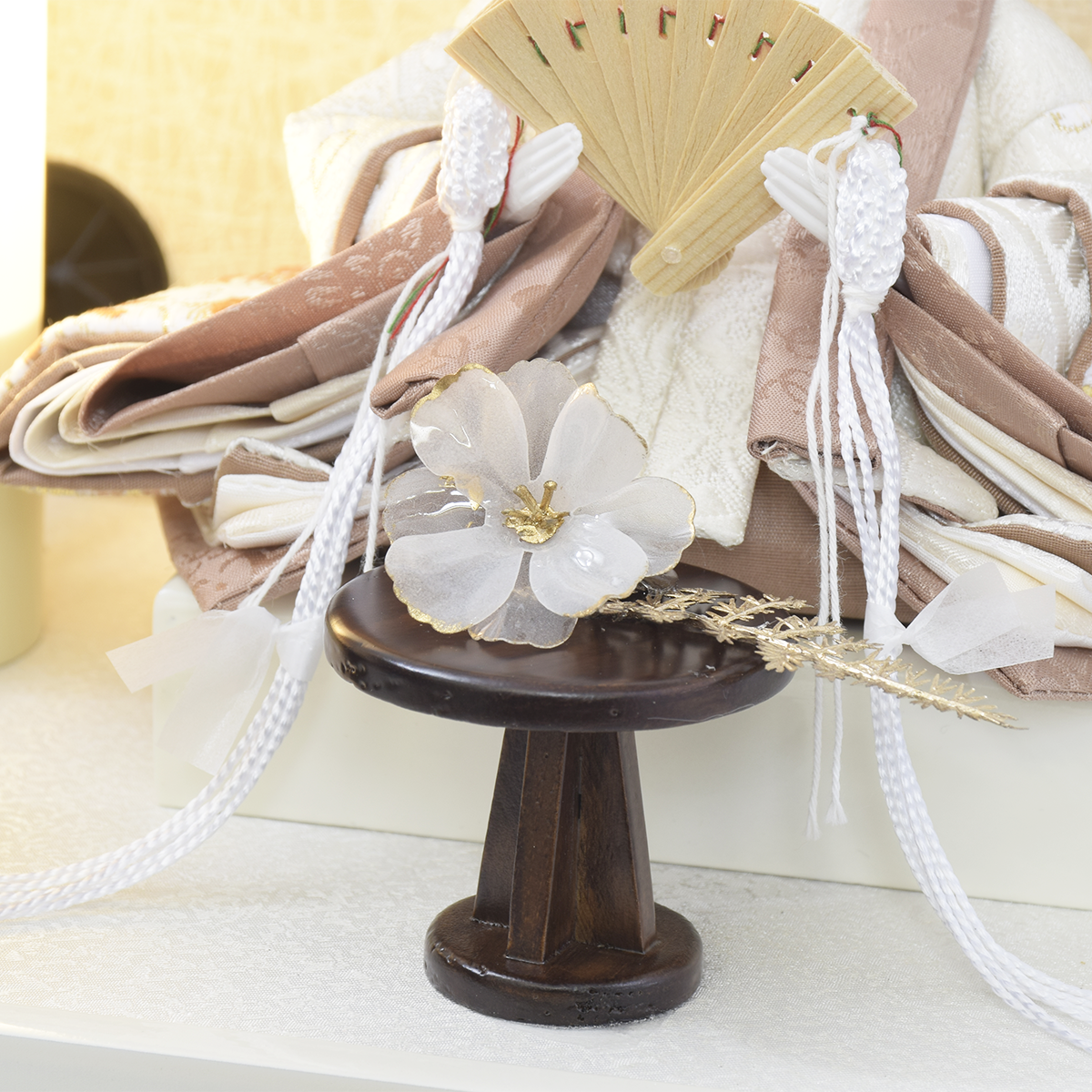 お道具は透明感のあるお洒落なお花を配した高坏と六角三宝。