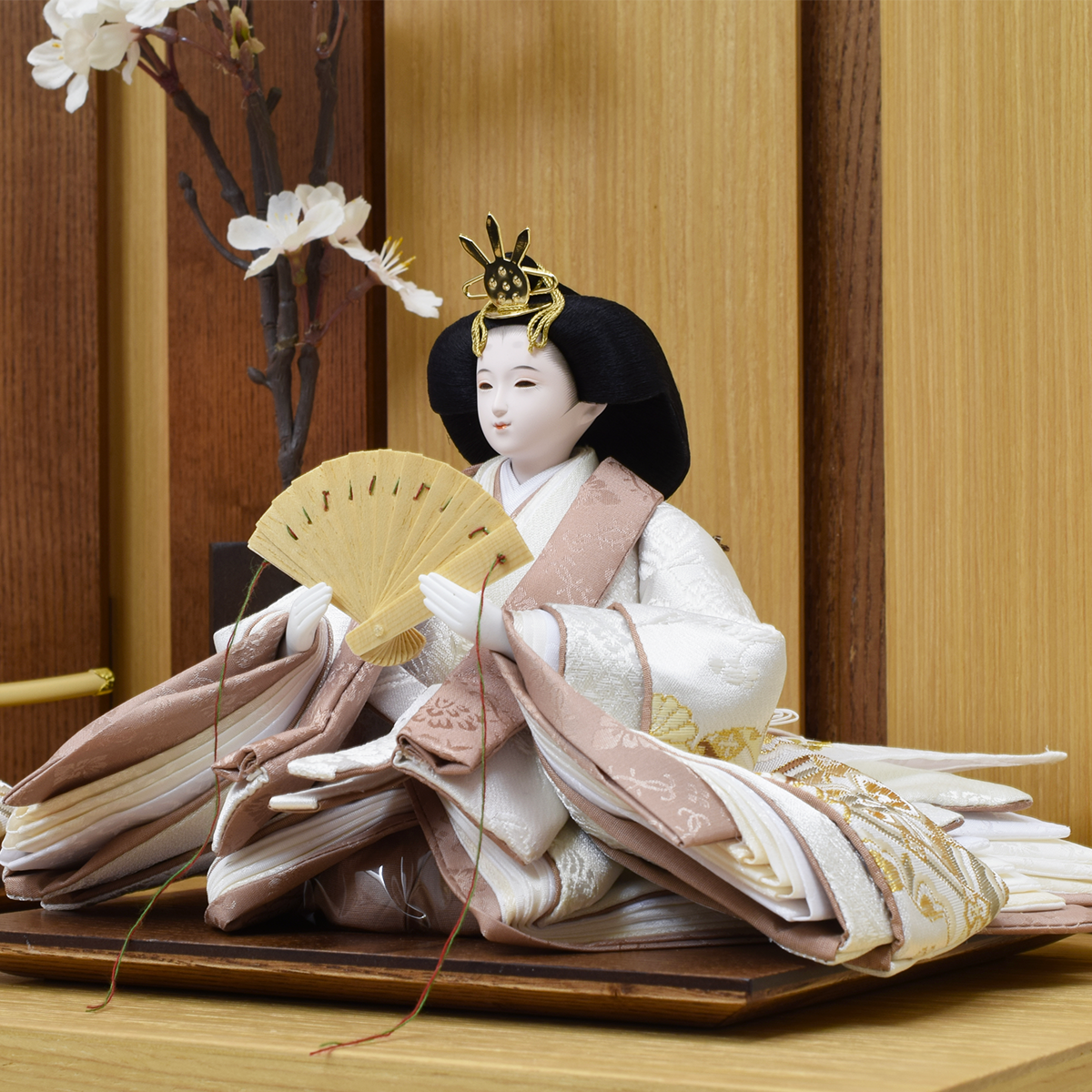 ウッドスタイルの収納式御飾台。御人形やお道具が収納できます。