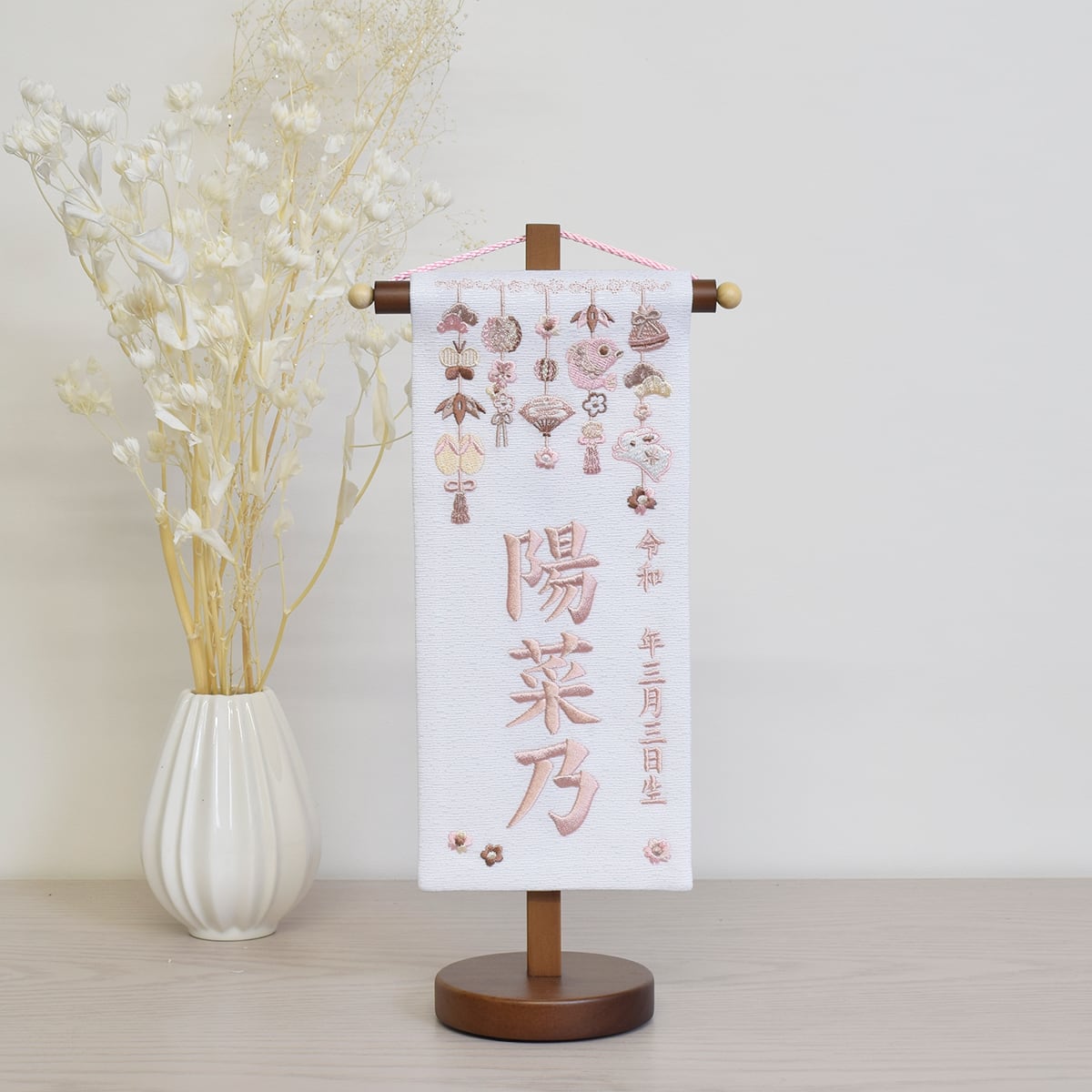 名前旗【つるし雛】豆サイズ|総刺繍|おしゃれ|モダン|コンパクト|今どき|和モダン|スタイリッシュ
