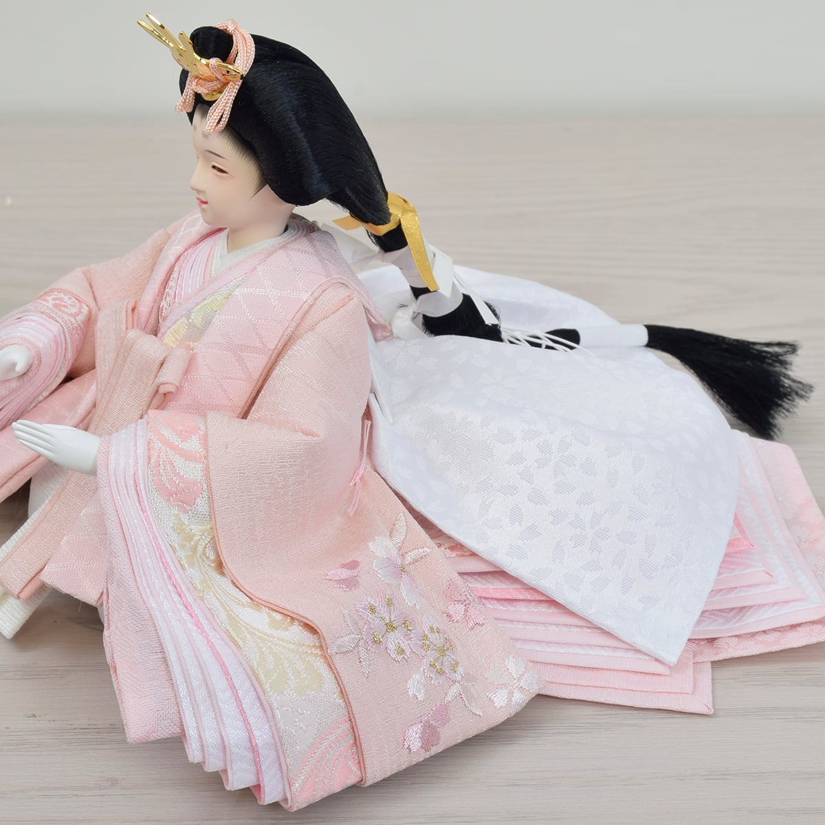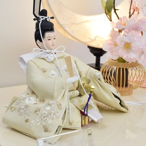 御人形は正絹生地に桜の刺繍を施した逸品のお仕立。