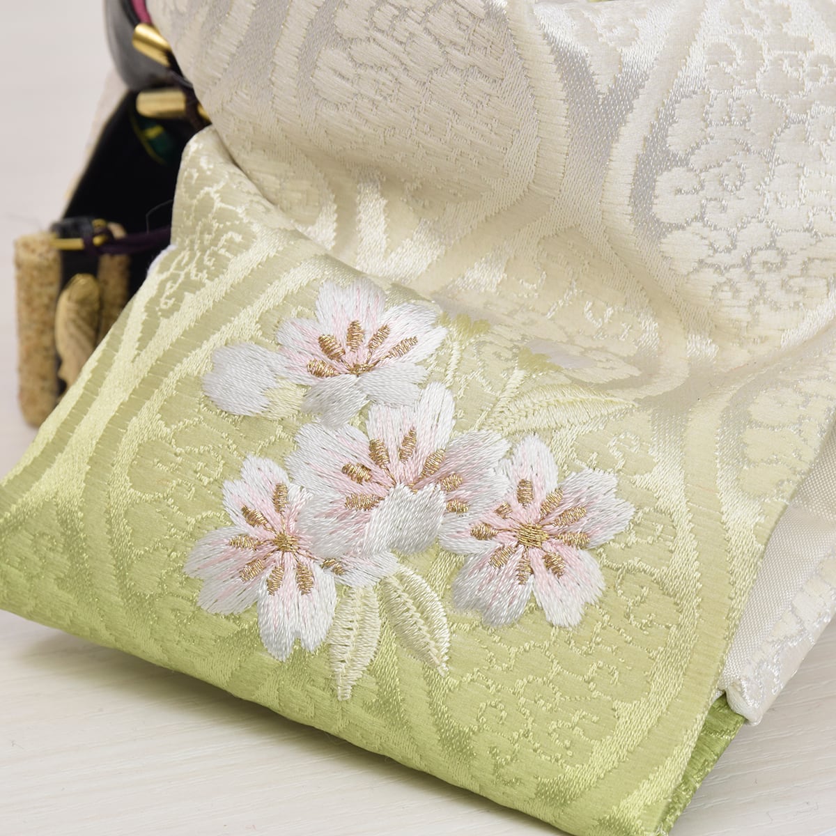 お人形の衣裳には暈し染に刺繍を施した豪華な仕上げ。