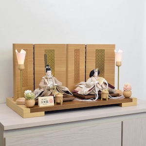 親王揃い・木製一人台(対)木製御飾台・本金蒔絵四曲御屏風・LED電池式燭台(対)