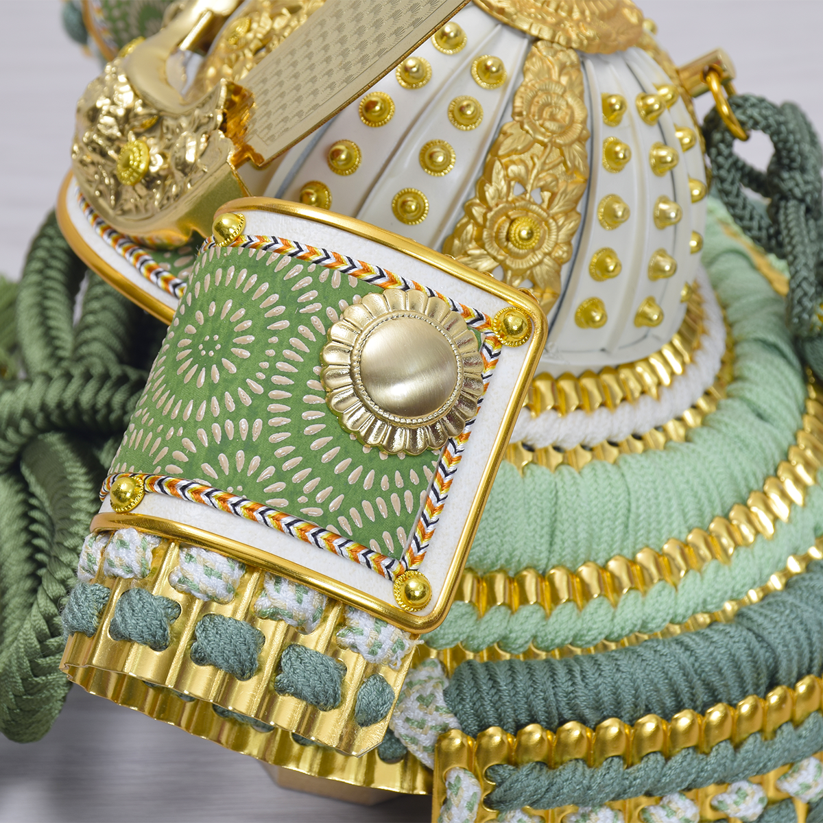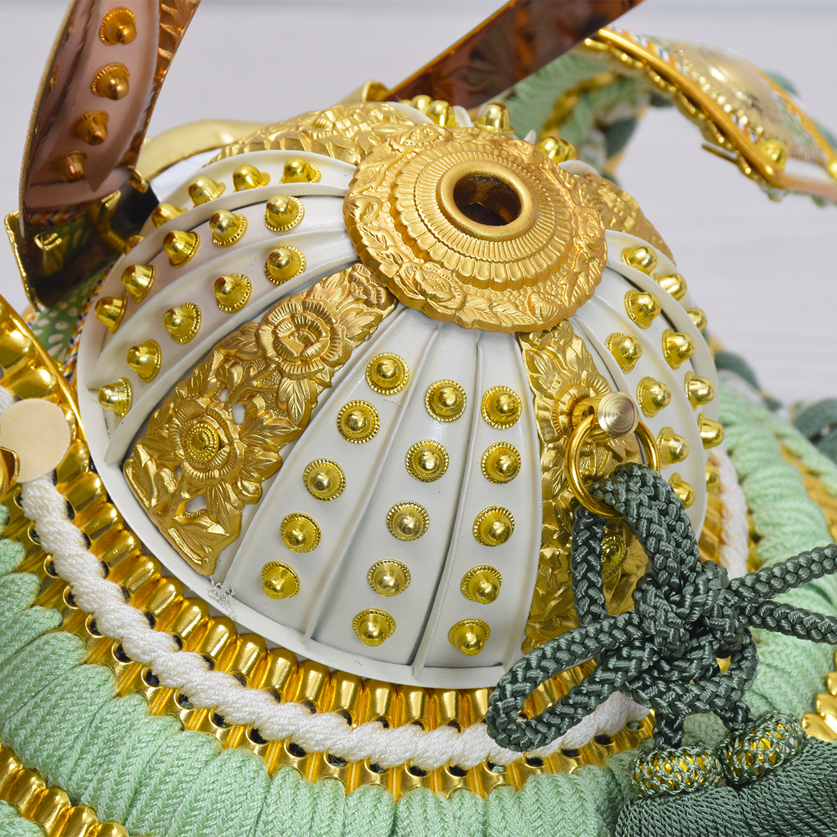 兜は金小札にわかくさ色の正絹段威。