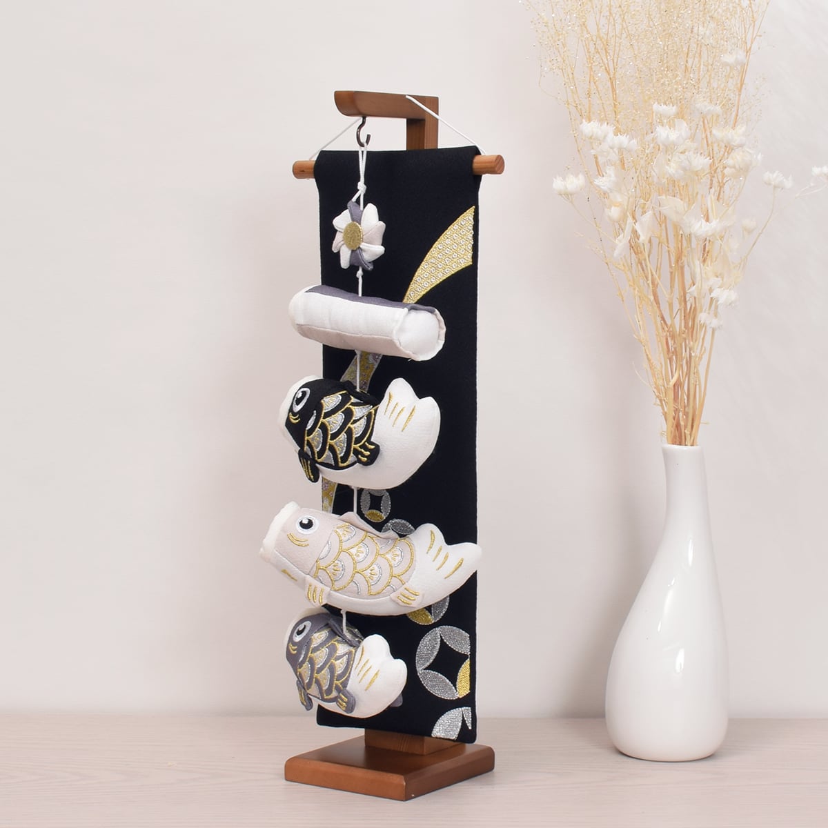 ちりめんの生地に刺繍を施したかわいい鯉のぼり。