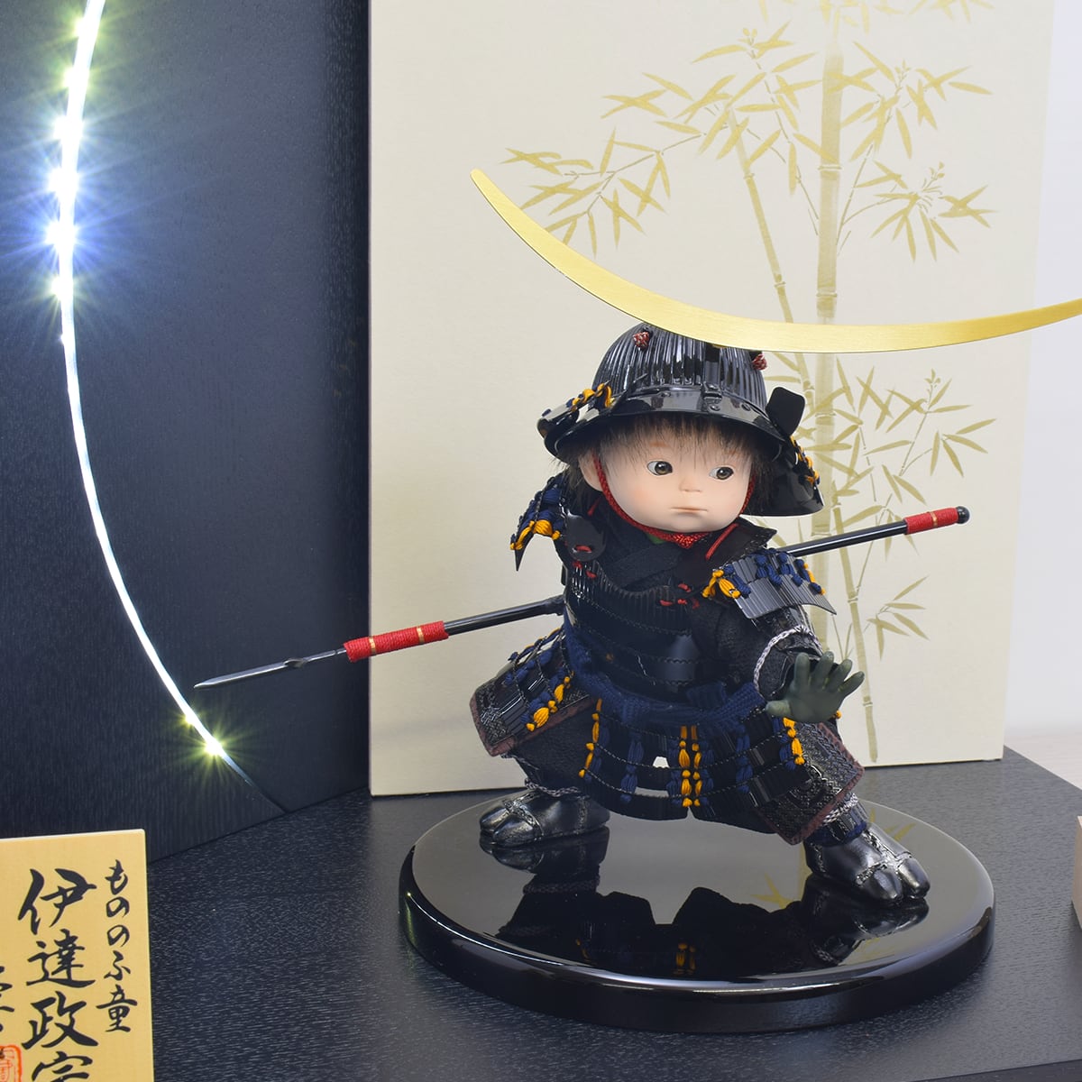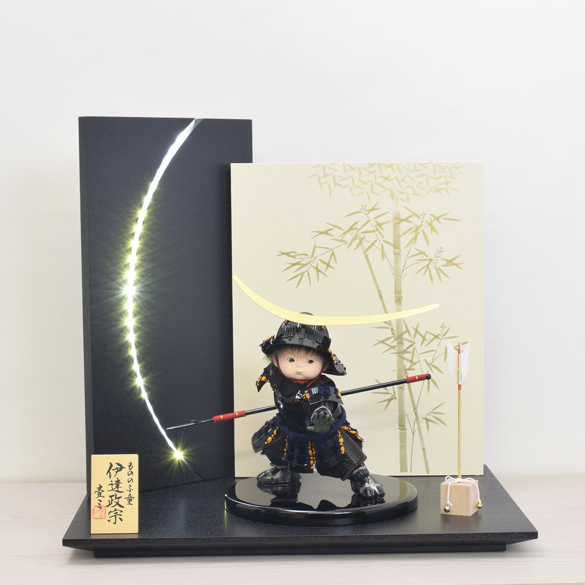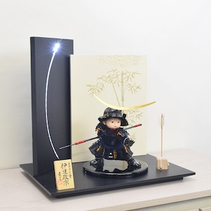 政宗人形・御飾台・二曲御屏風LED付・矢飾り