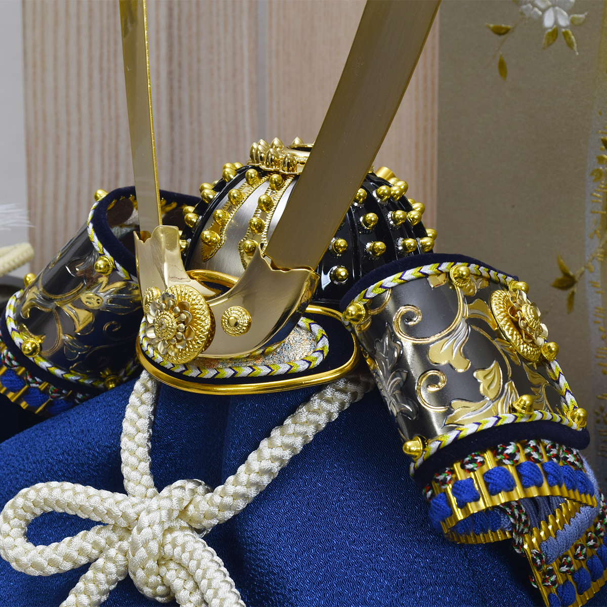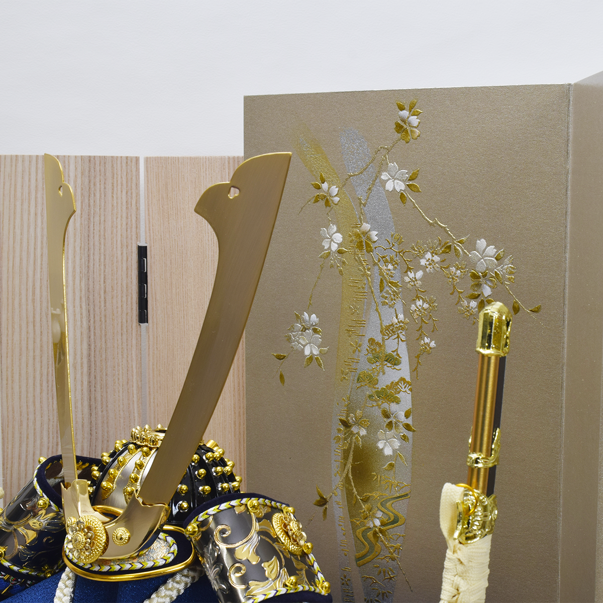 セット内容:8号兜・二曲屏風(2)・御飾台・弓太刀飾り