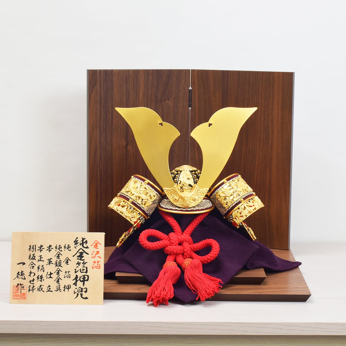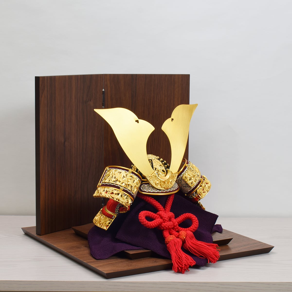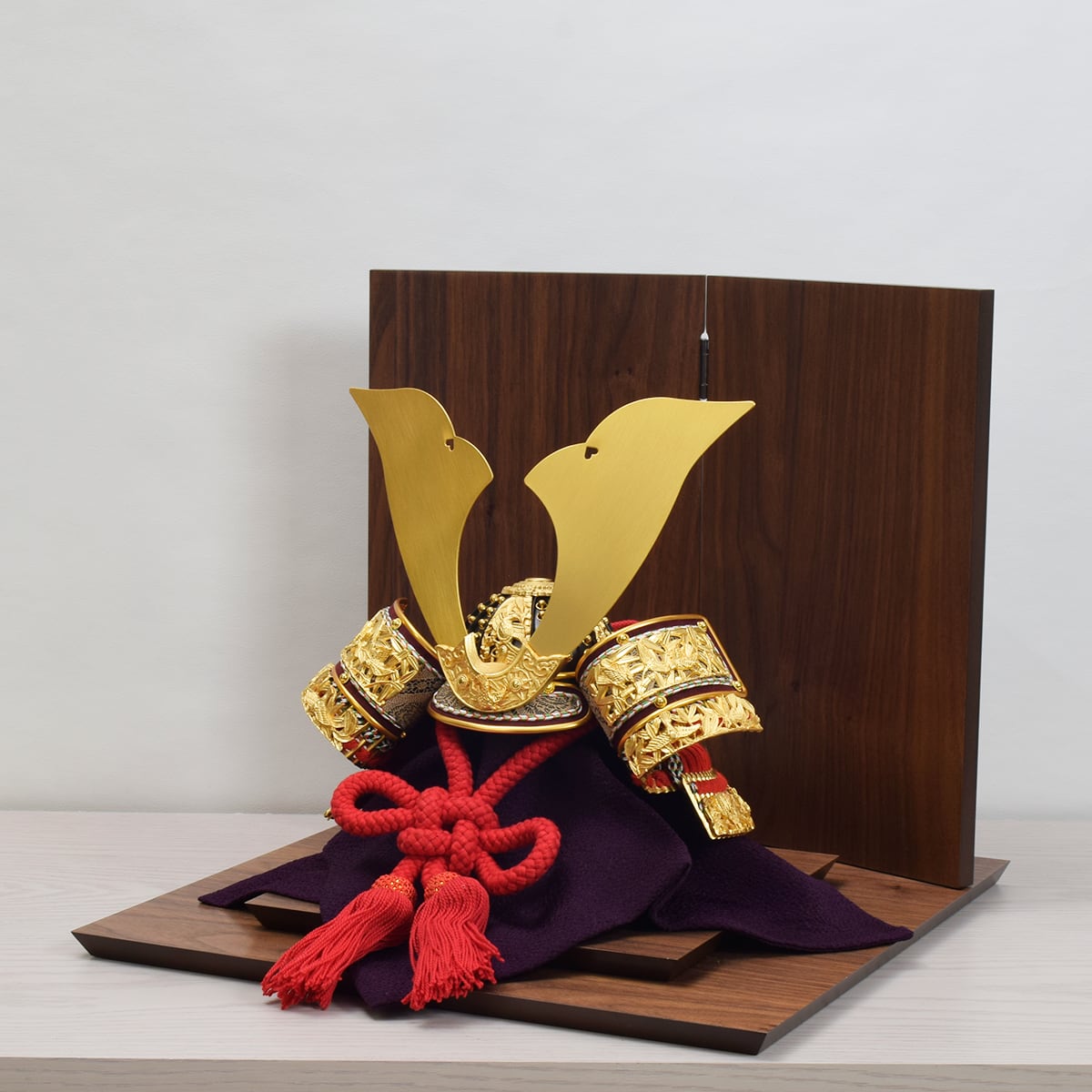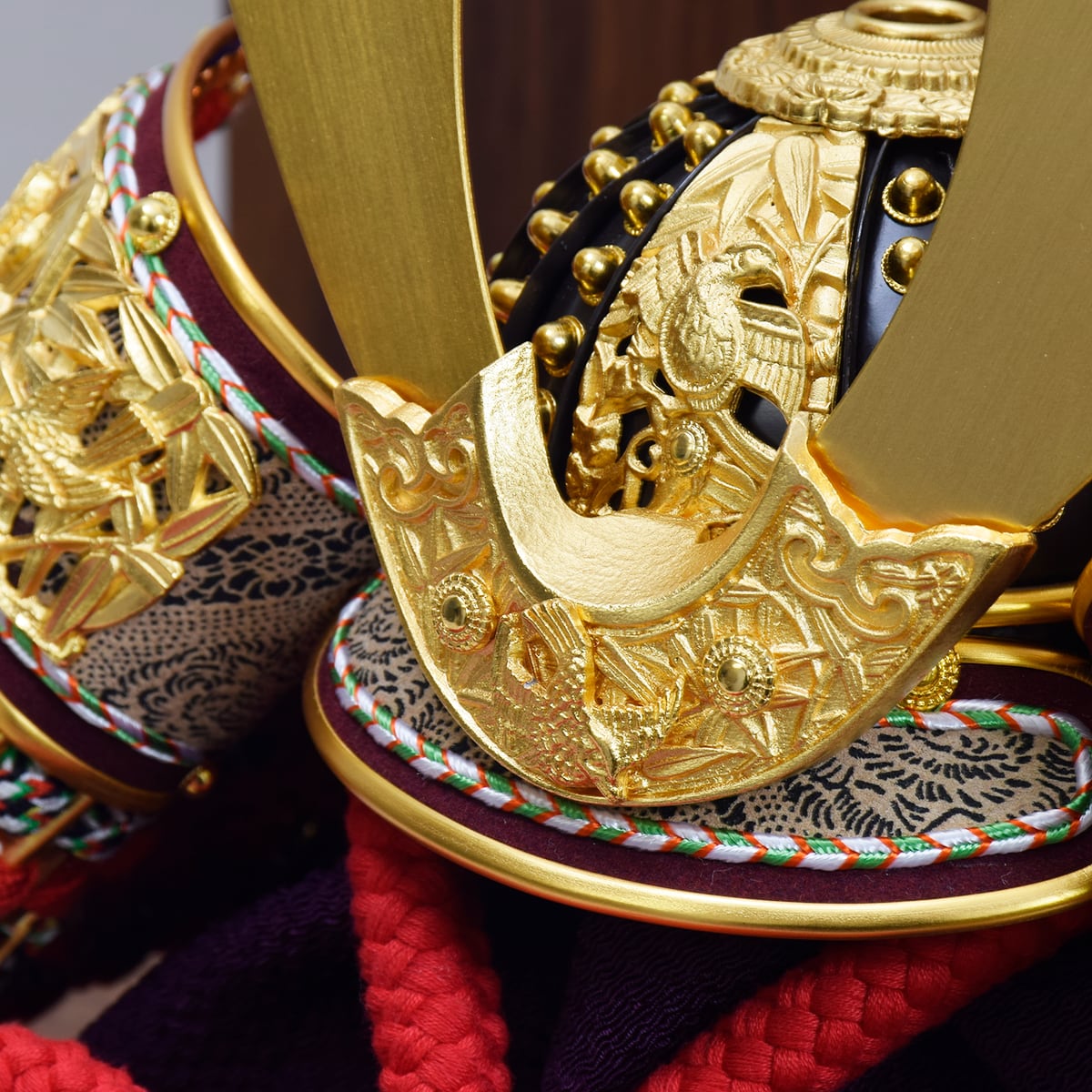 兜飾り【純金箔押竹雀之兜】ウォールナット|おしゃれ|モダン|今どき|コンパクト|五月人形|端午の節句