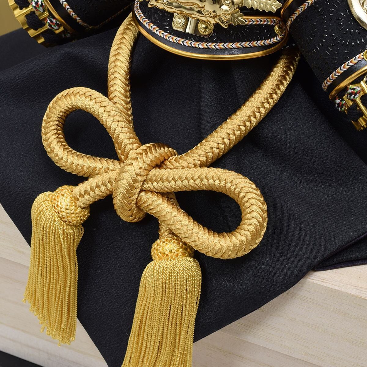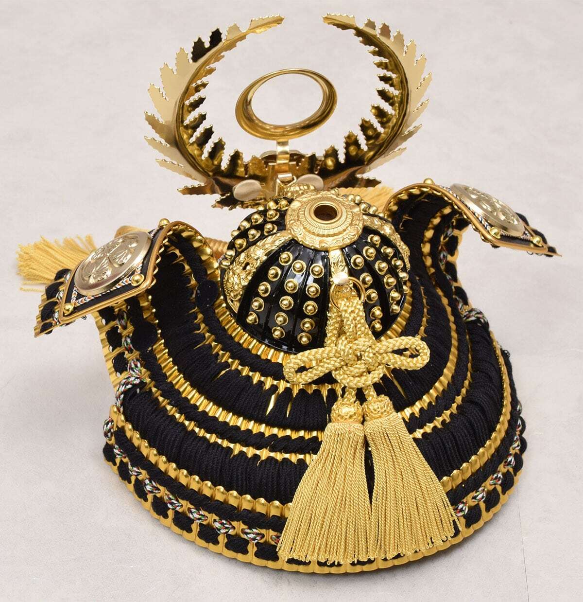 金と黒色で仕立てたシンプルで美しい兜です。