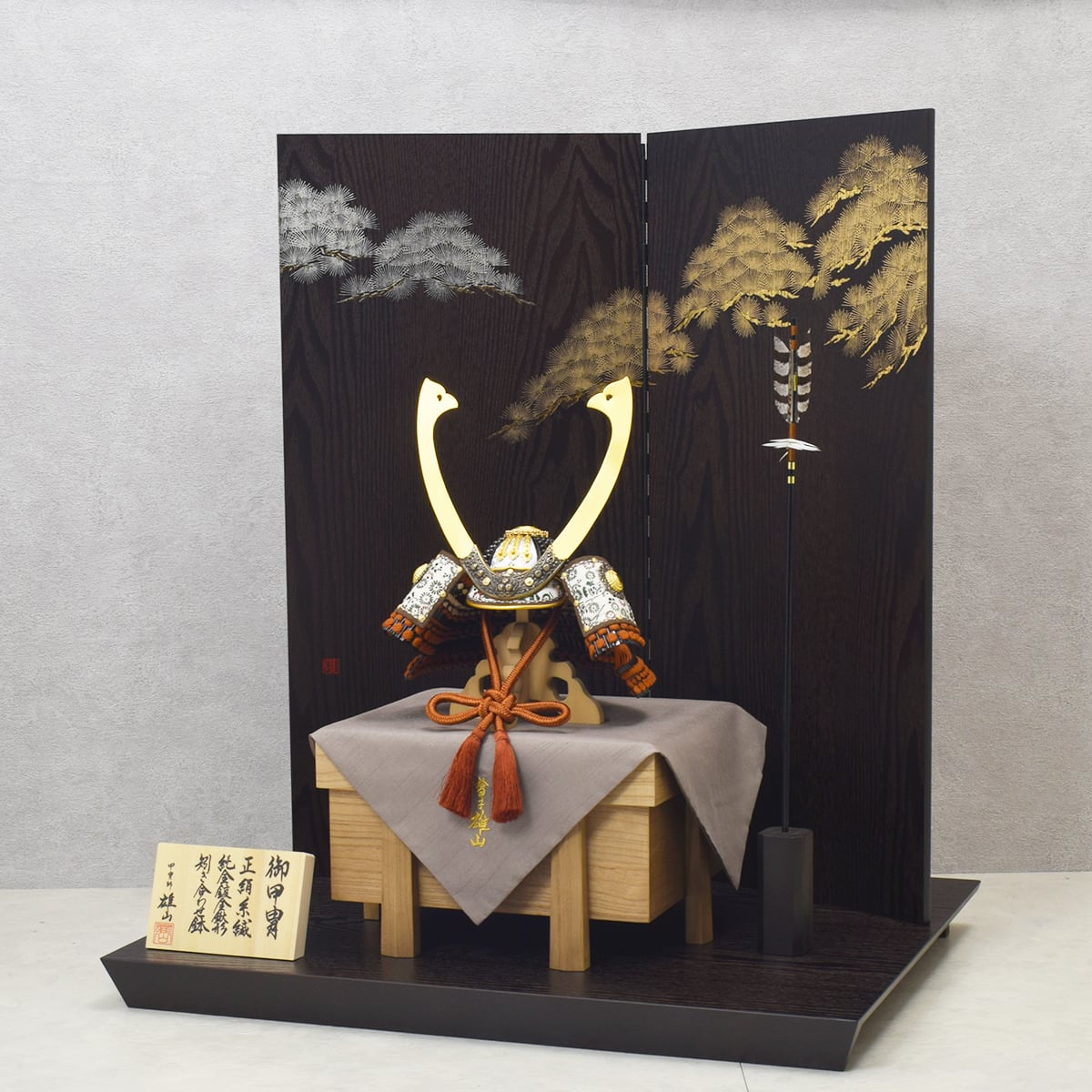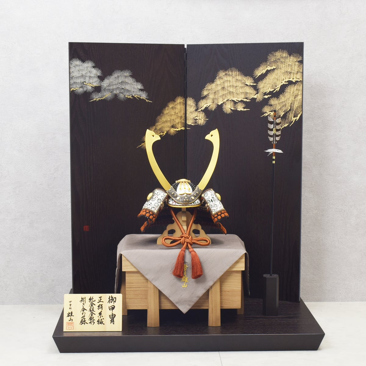 兜飾り【暁1/4茜糸威】金銀松蒔絵|おしゃれ|モダン|スタイリッシュ|今どき|かっこいい|五月人形|鈴甲子雄山
