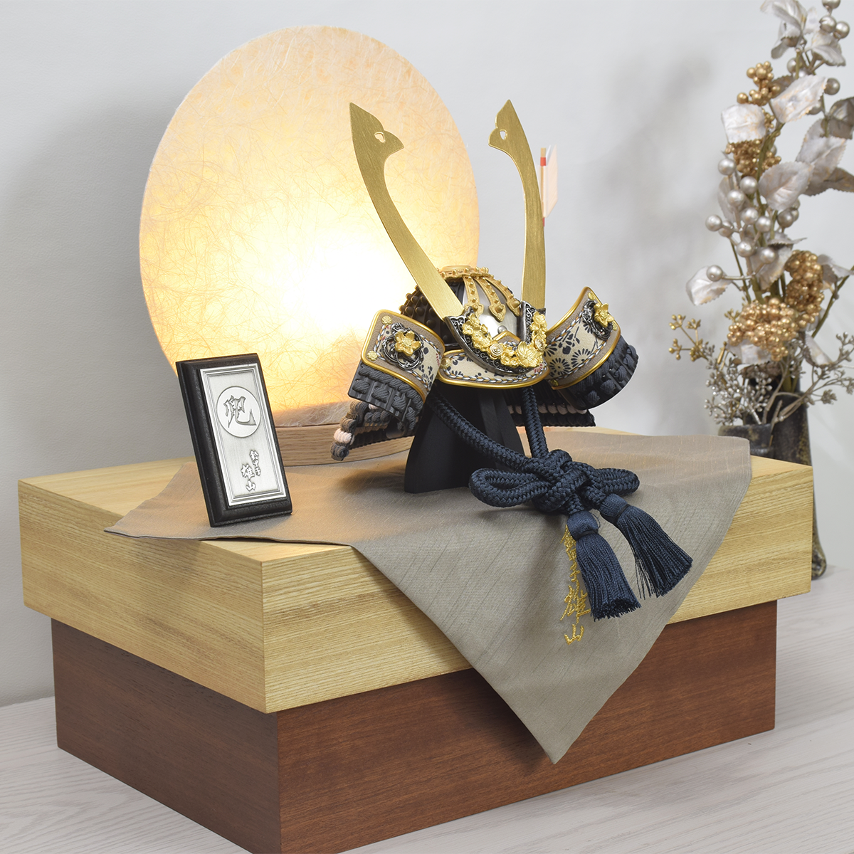 兜飾り【夜香桜兜】結月行灯|収納上手|おしゃれ|モダン|スタイリッシュ|今どき|かっこいい|五月人形|鈴甲子雄山