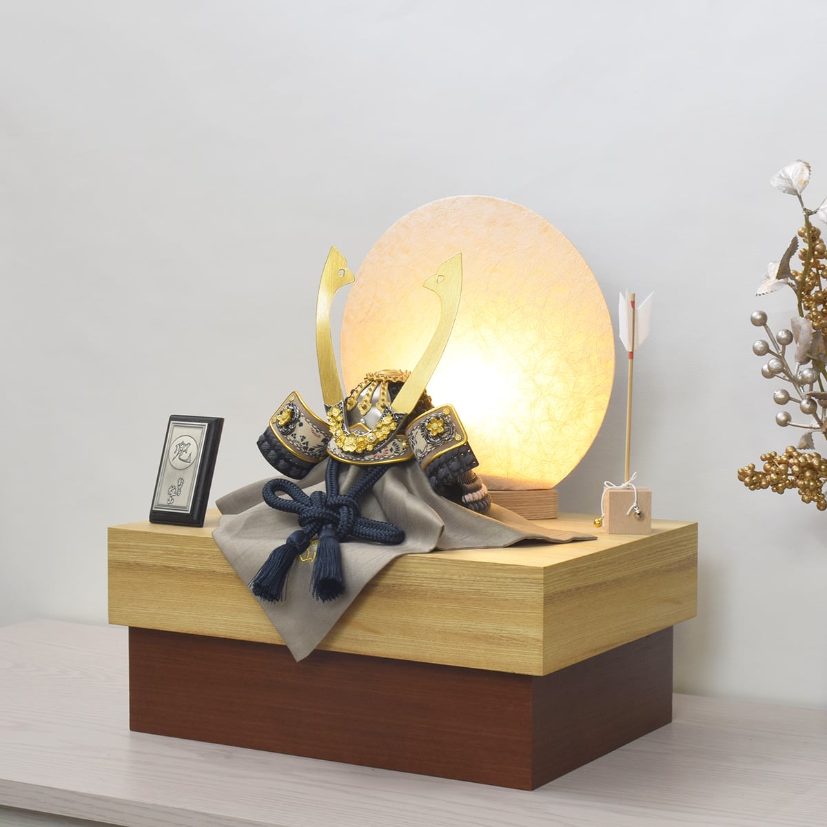 1/5兜 ・ミニ矢飾り・和紙行灯(LED電気コード式)・収納式御飾台