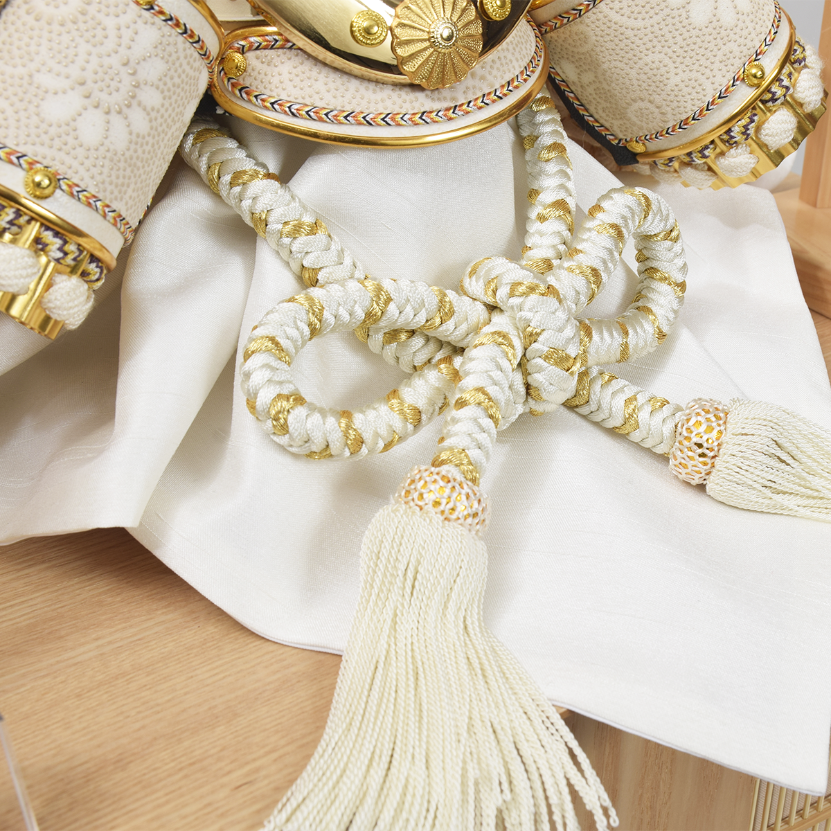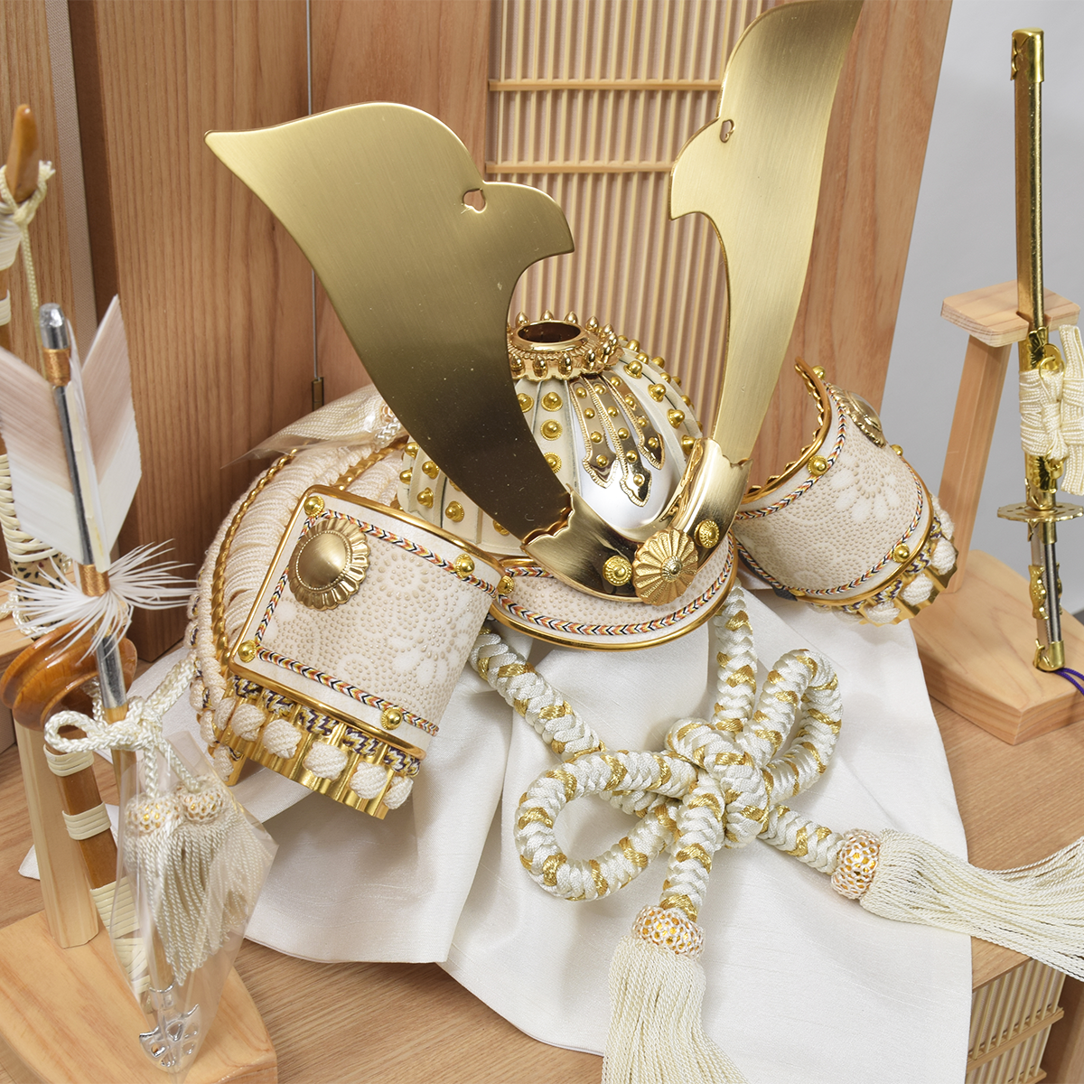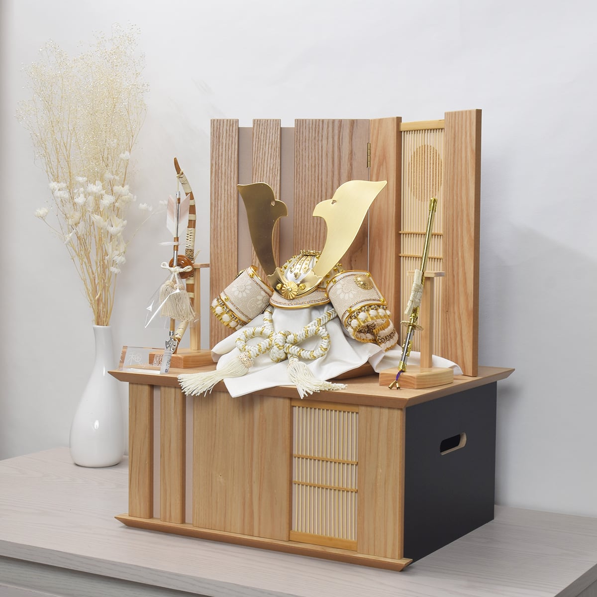 10号兜 ・弓太刀飾り・収納式御飾台・二曲屏風