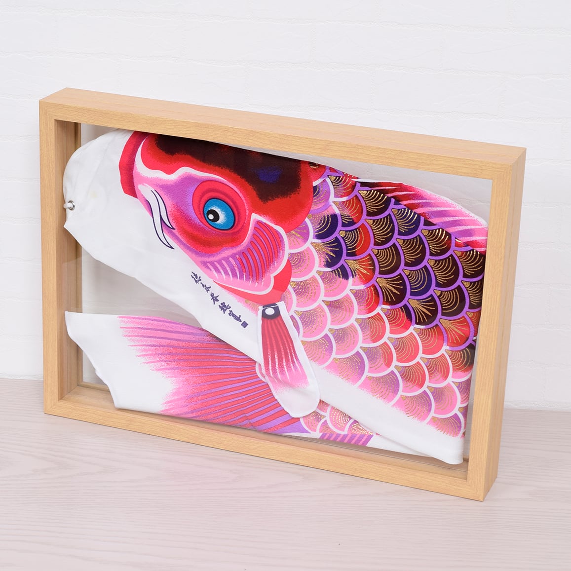 フレームに納めた鯉のぼりは発色の良いちりめん素材に染め上げた錦鯉。