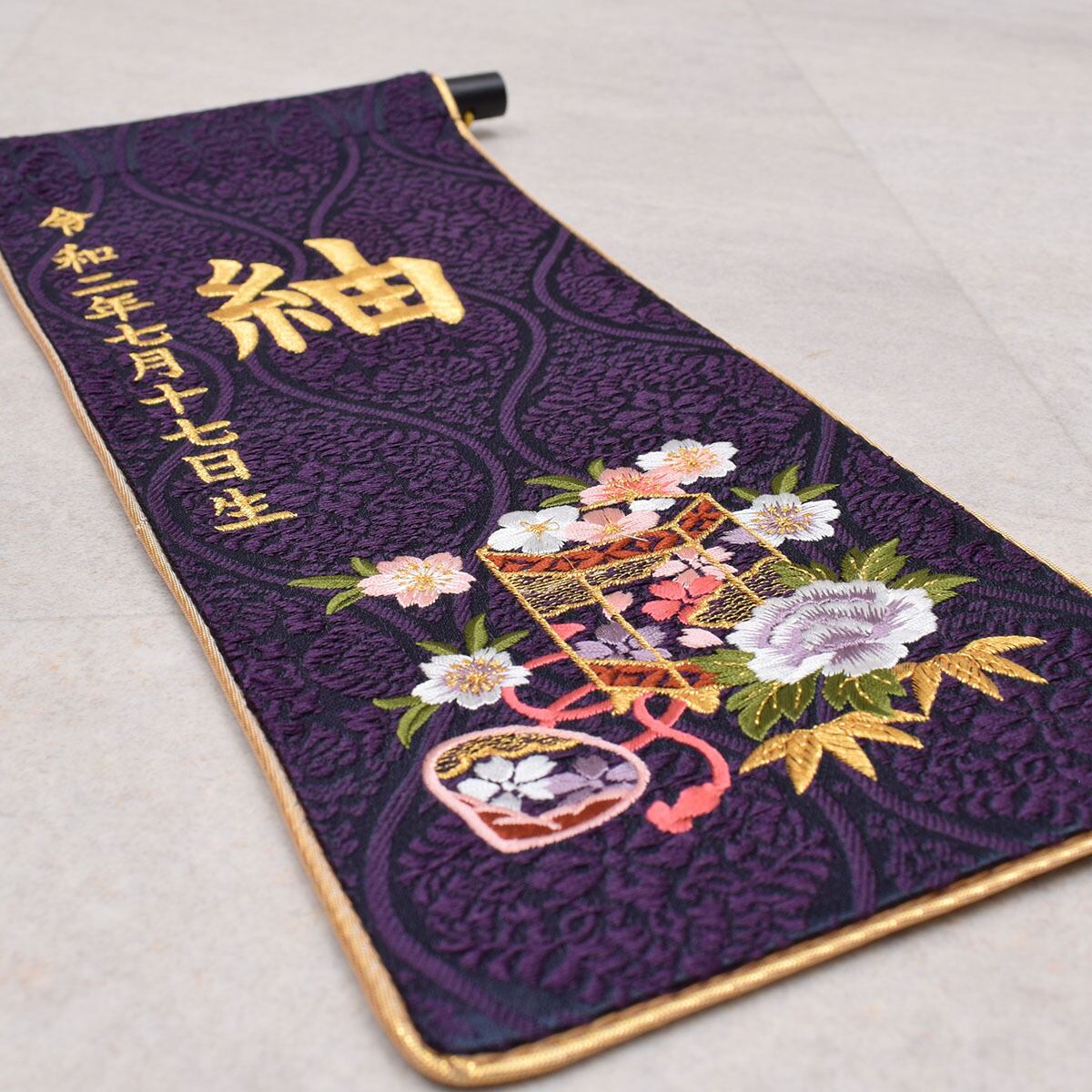 金襴織に総刺繍を施した御名前旗です。
