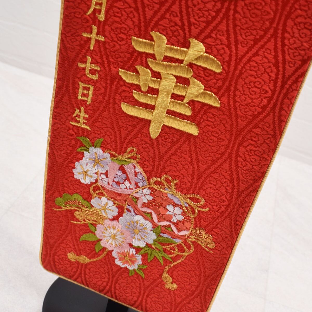 御名前と生年月日は金色で刺繍いたします。