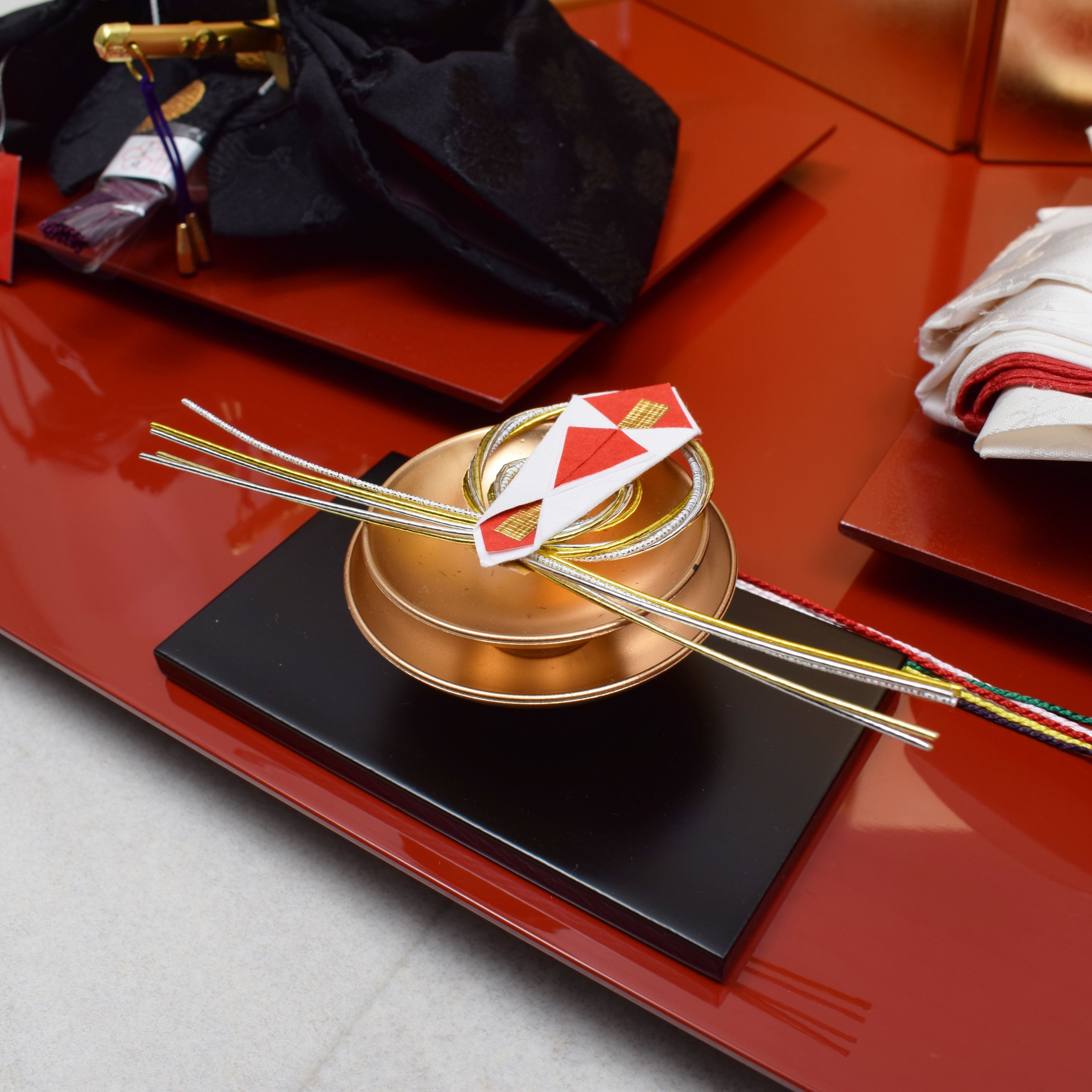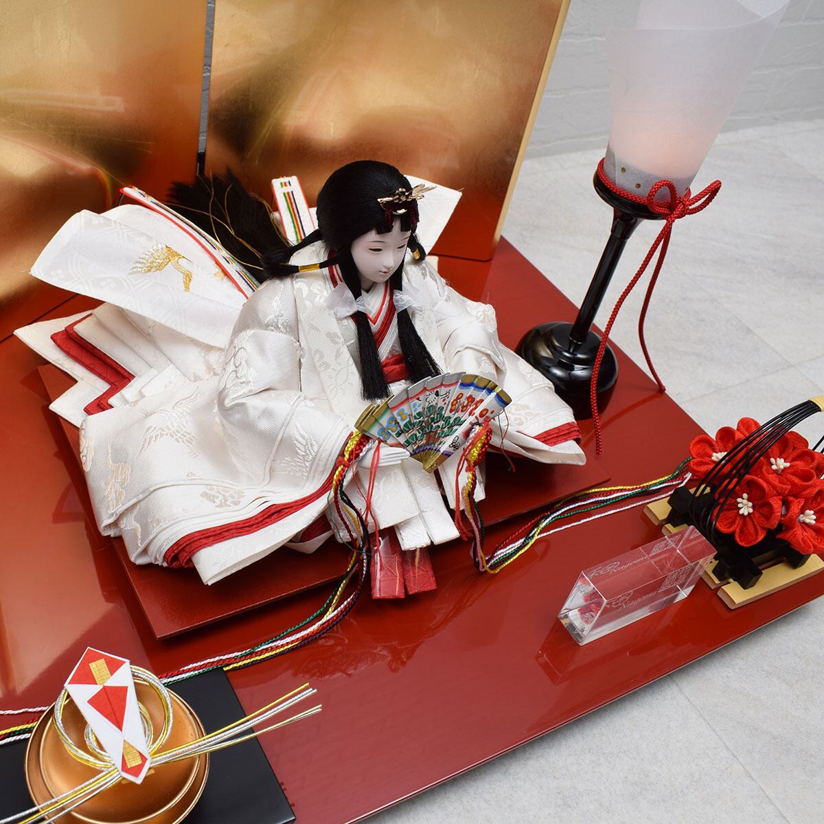御飾り台は緋毛氈をイメージした木製高級「高岡塗」の逸品。