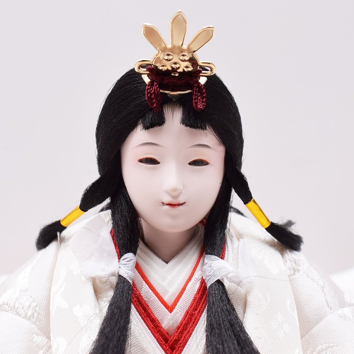 内裏雛の衣裳は伝統的な柄「雲鶴紋様」の西陣織。