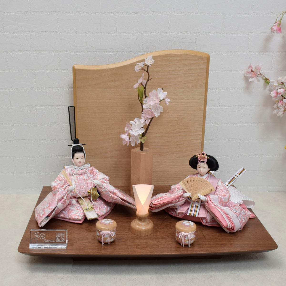 前飾り:木製行器(対)・燭台・桜オブジェ