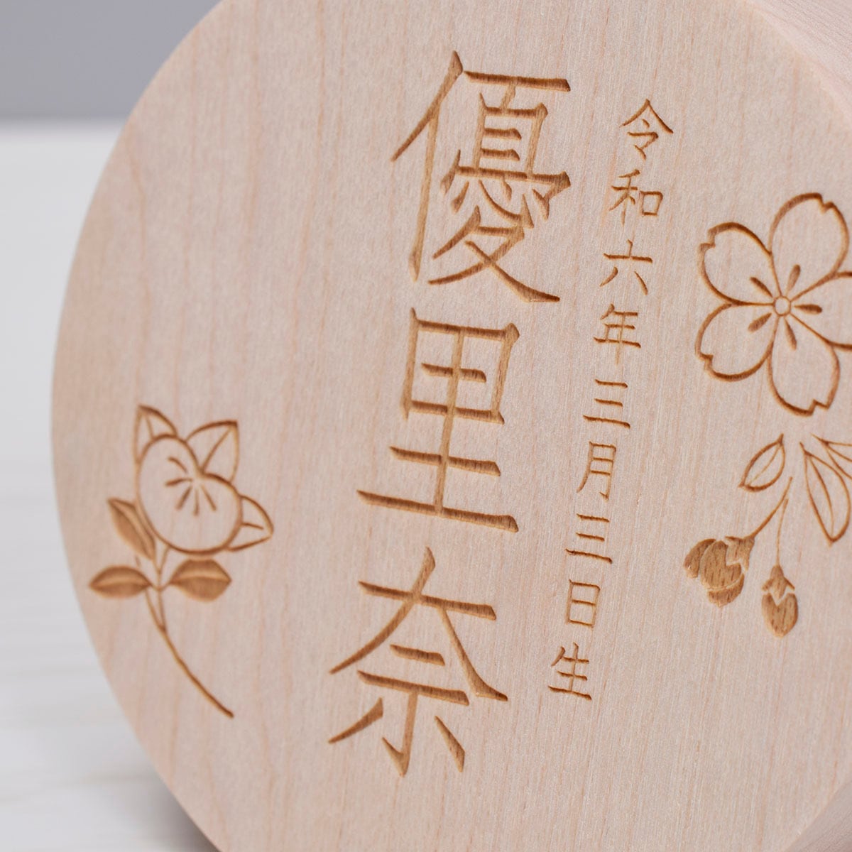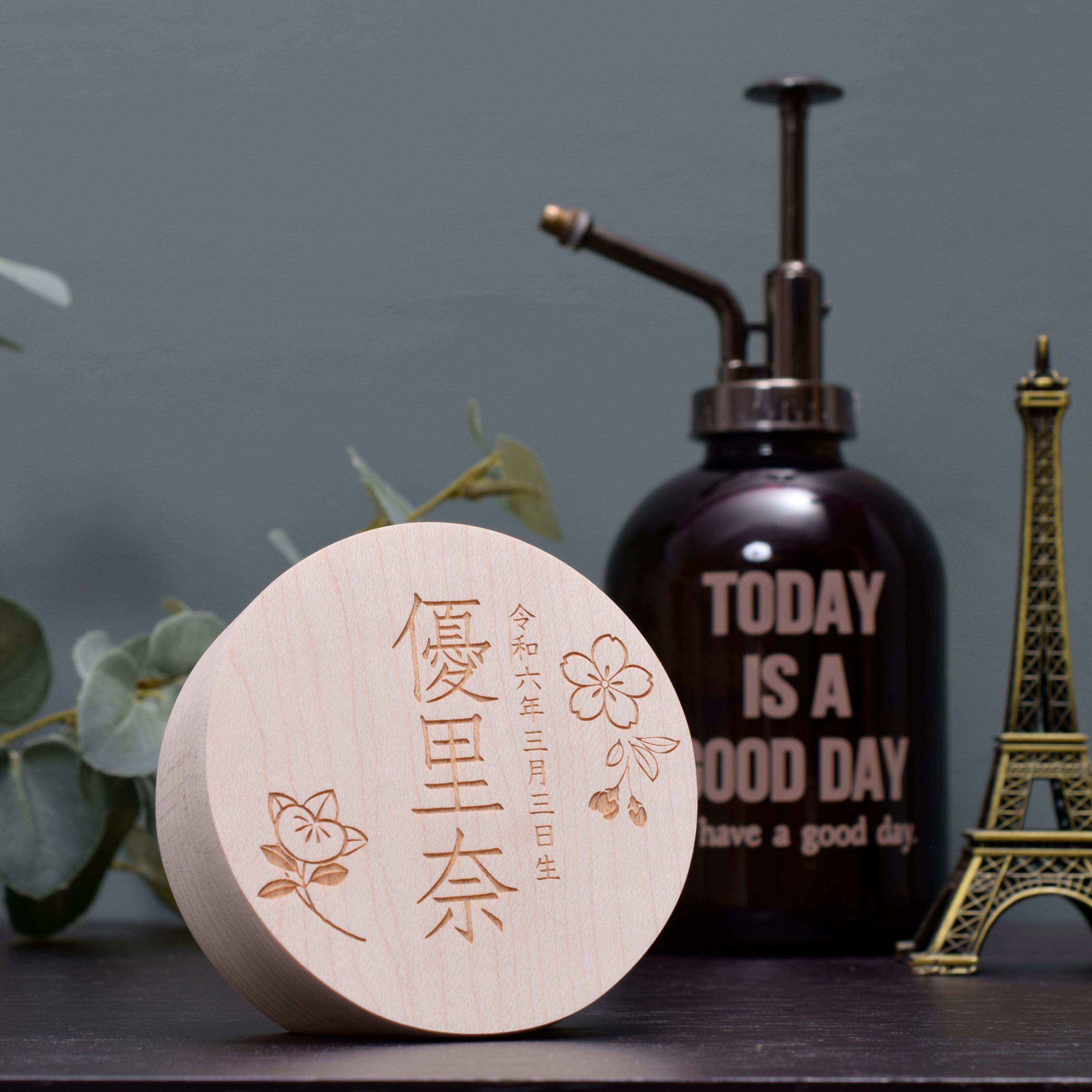 まる型御名前木札【桜橘】おしゃれ|モダン|コンパクト|名前入り木札|レーザー刻印|丸型木札|雛人形|お雛様