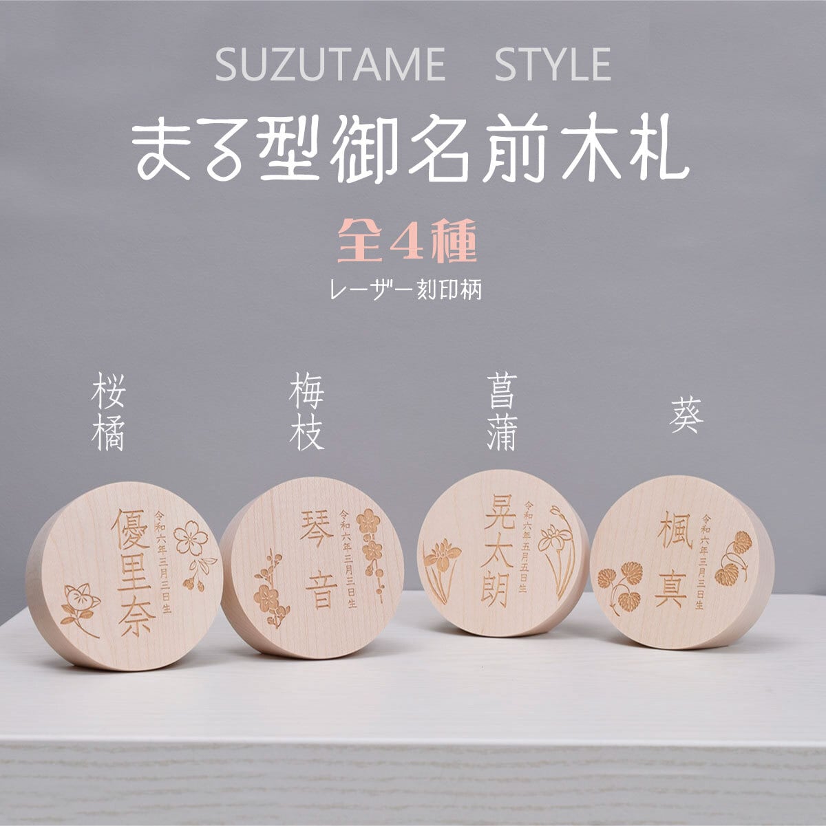 木札には桜と橘の柄がレーザーで刻印されたSUZUTAMEオリジナルデザイン。