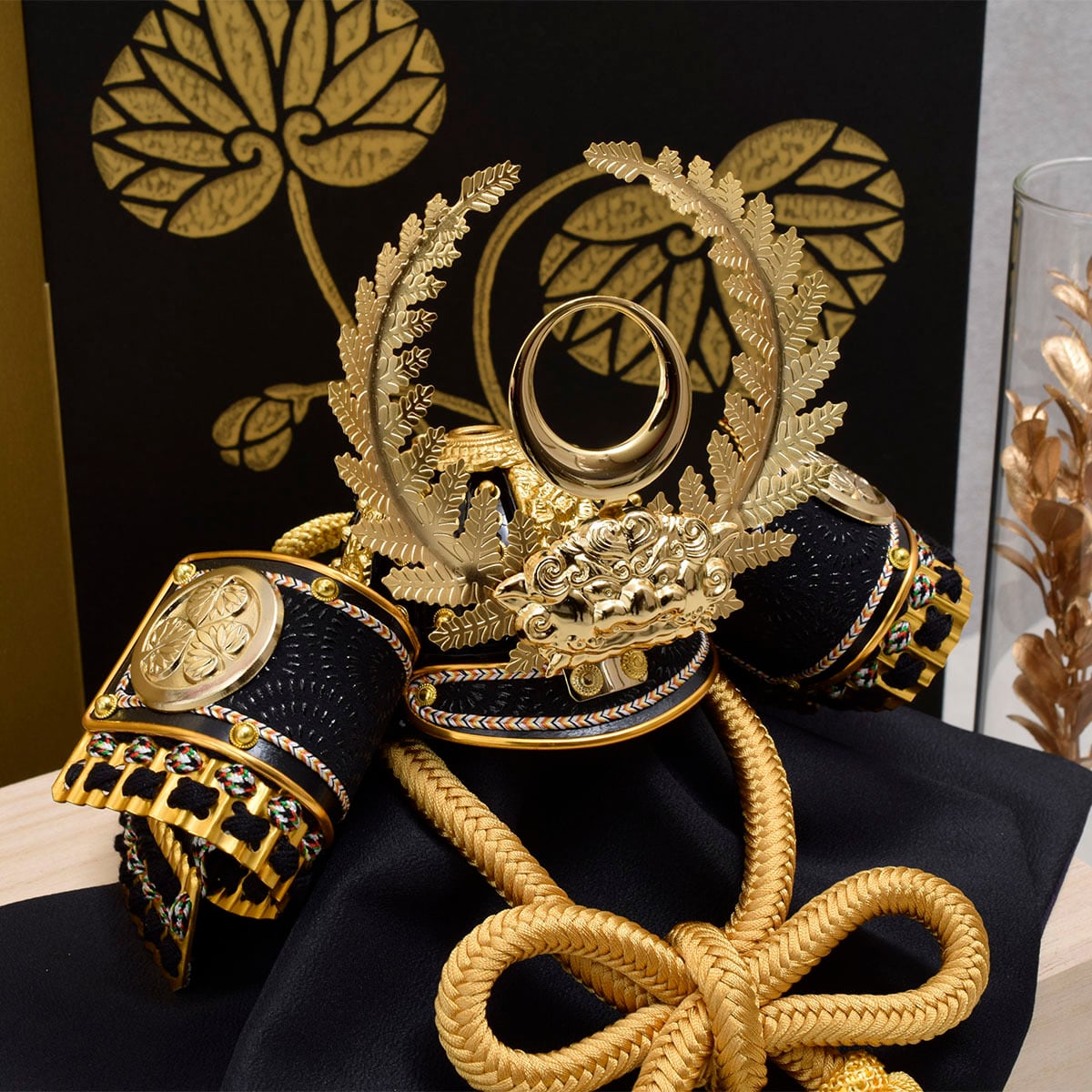 兜飾り【双葉葵・黒金】徳川家康公兜|おしゃれ|モダン|スタイリッシ|今どき|かっこいい|五月人形