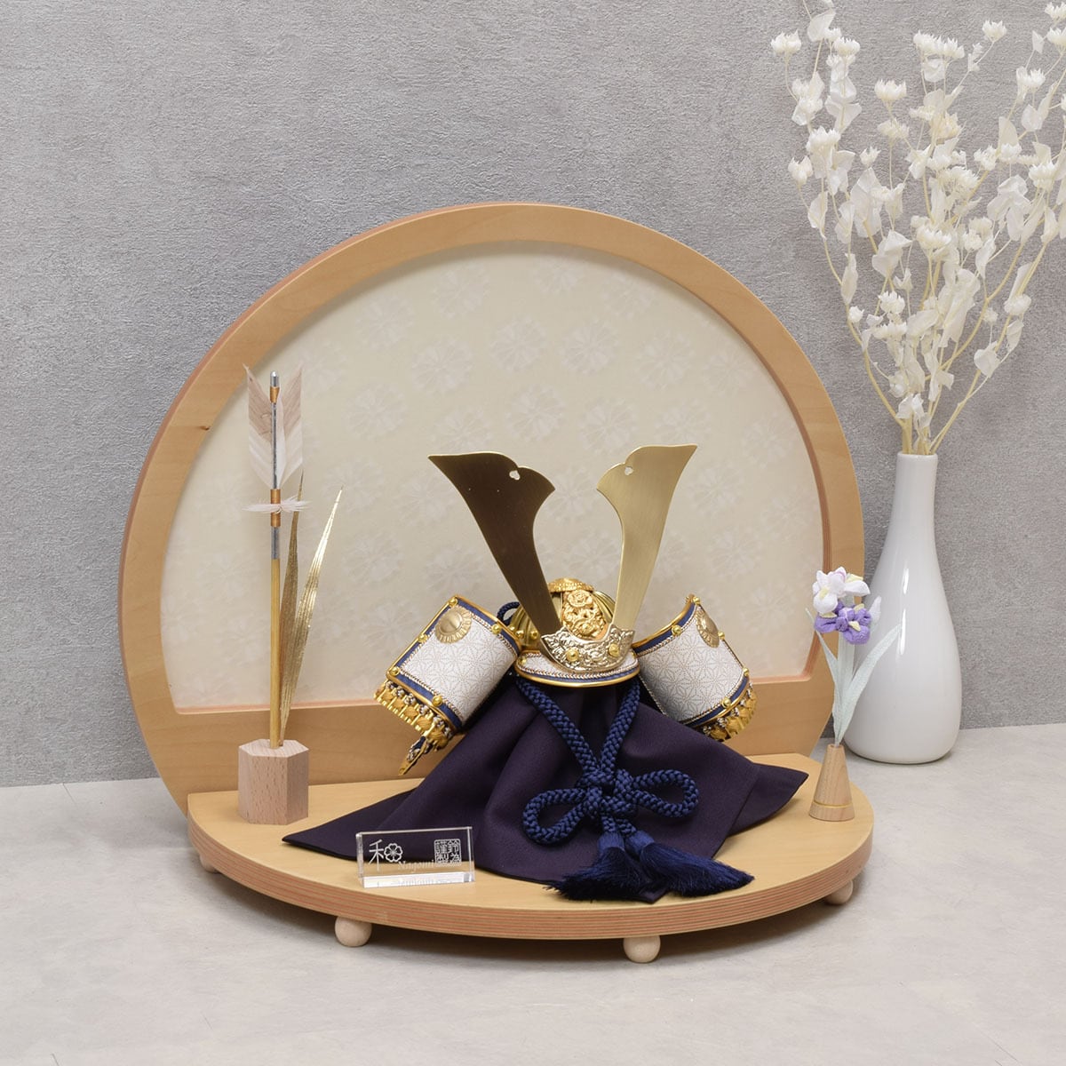 兜・木製円形衝立・半円御飾台・矢飾り・花飾り