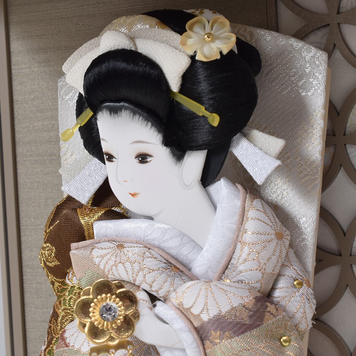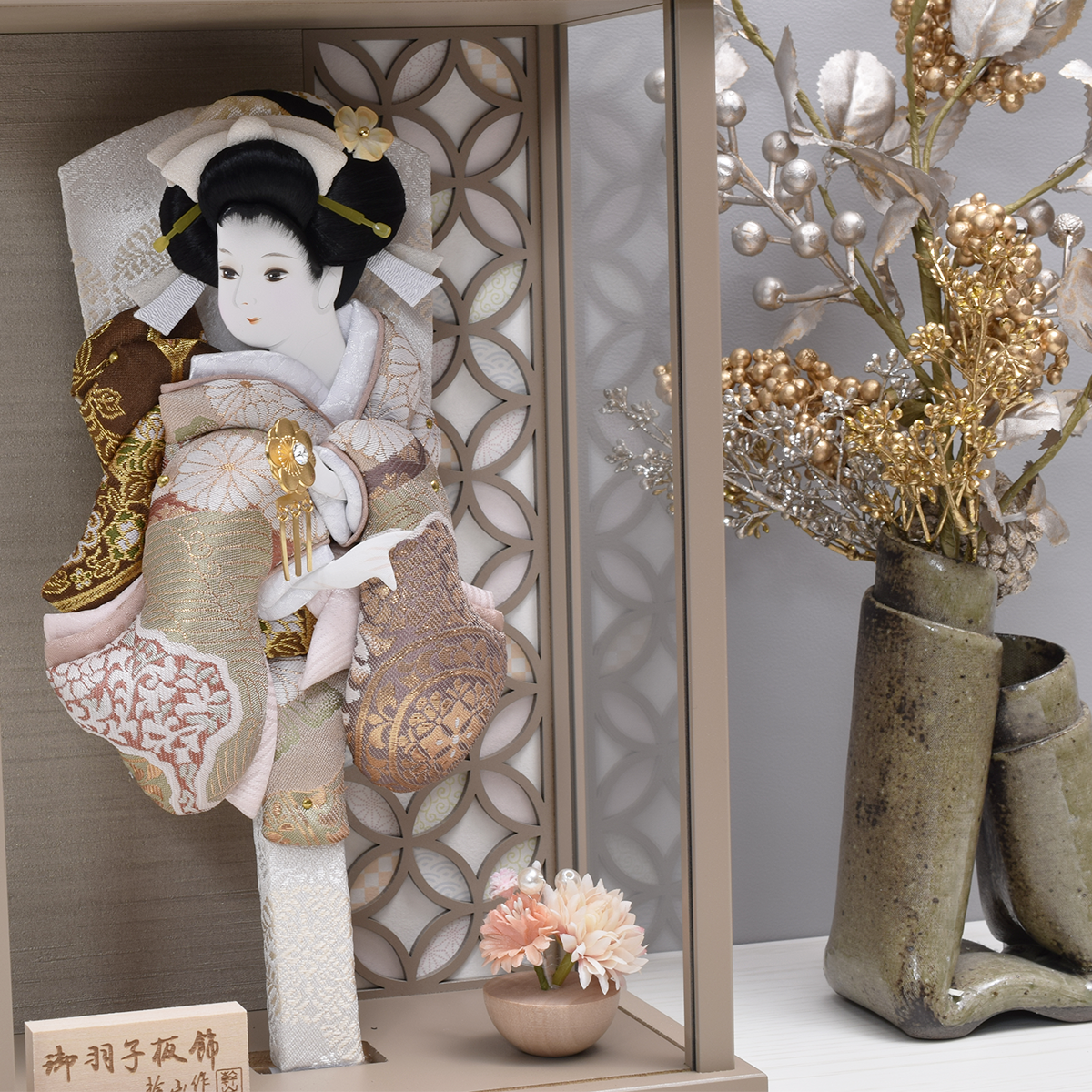 押絵羽子板飾り【凛】Rin |9号|おしゃれ|モダン|今どき|コンパクト|スタイリッシュ|西陣織|モカ|グレージュ