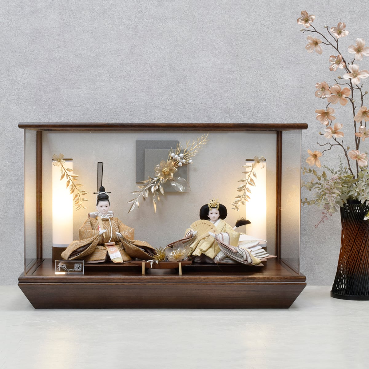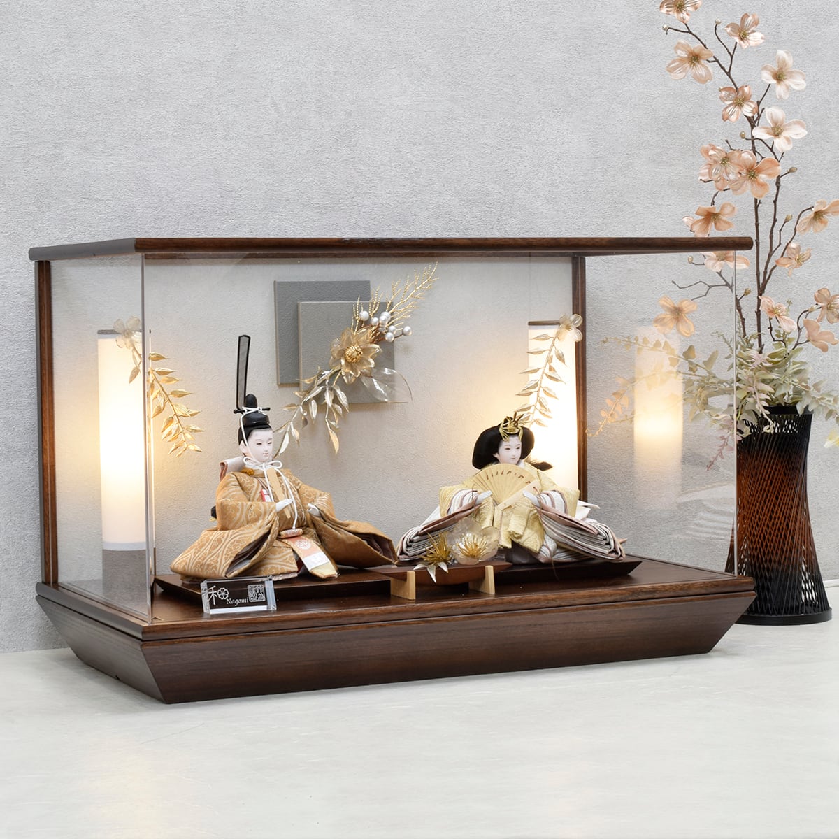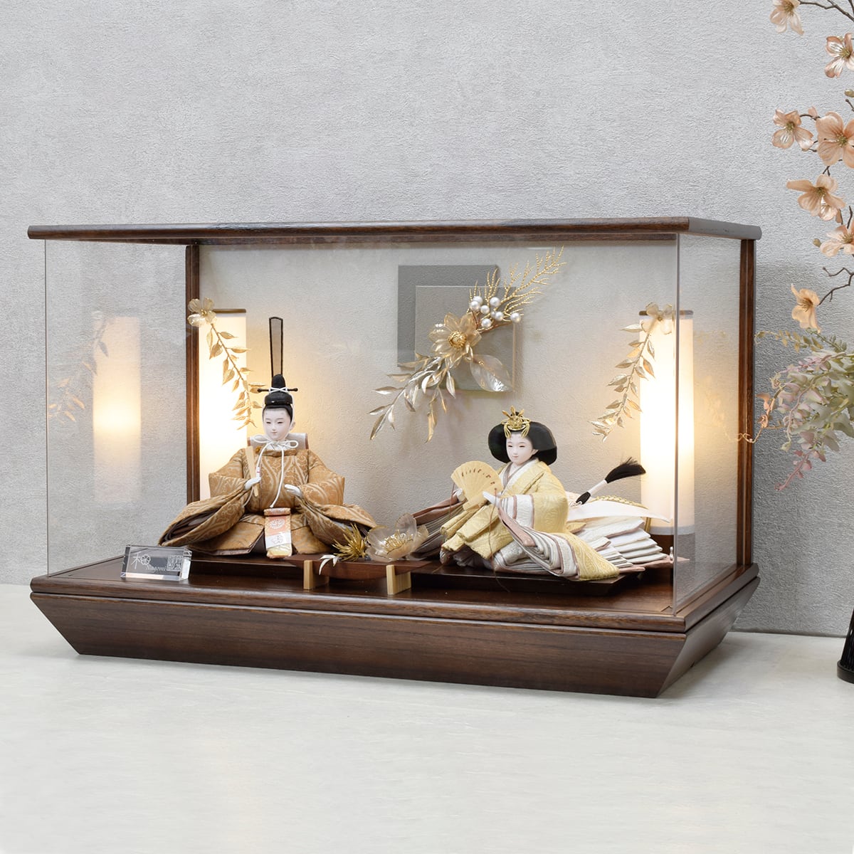 スタイリッシュなアクリルケースに収められた、雛人形です。