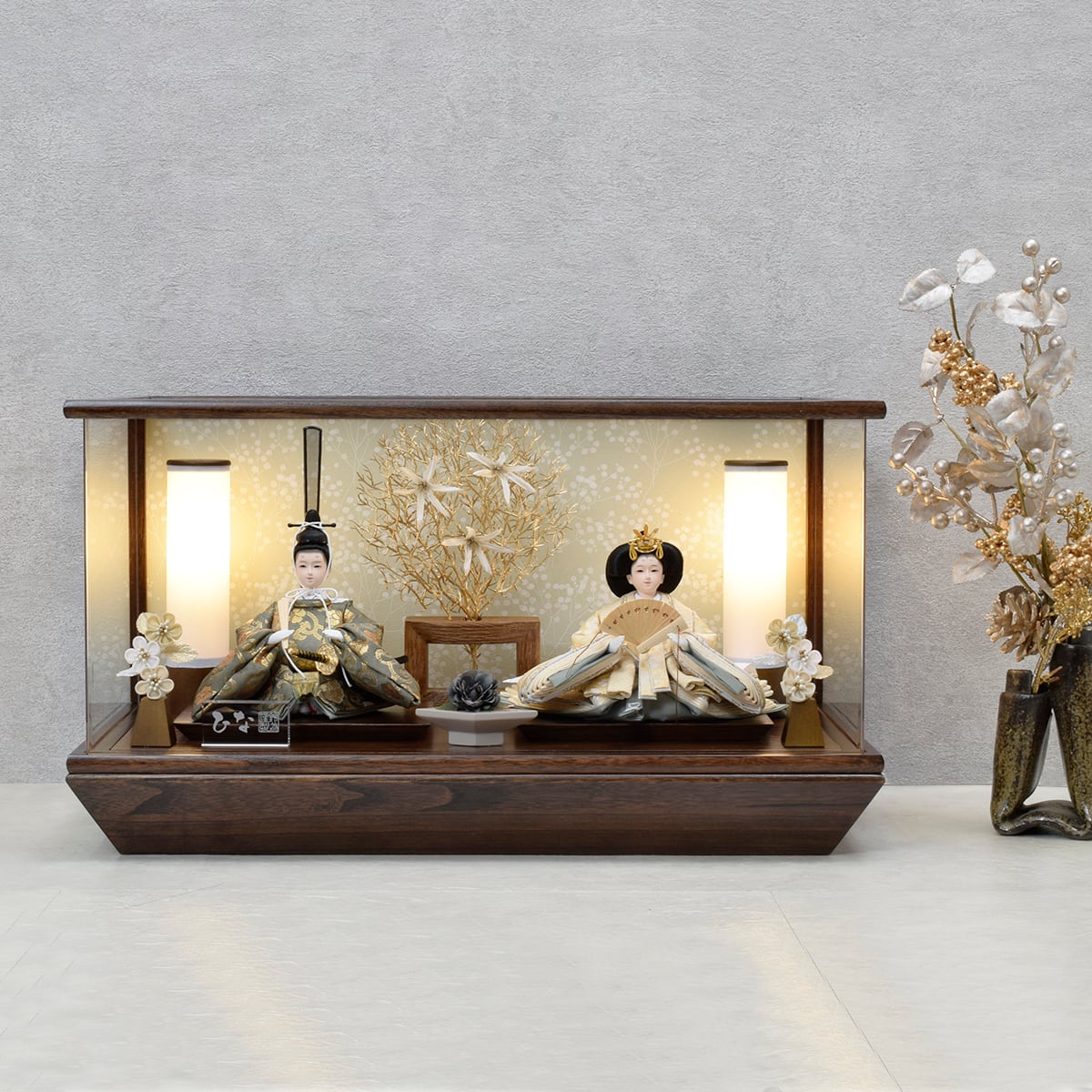スタイリッシュなアクリルケースに収められた、雛人形です。